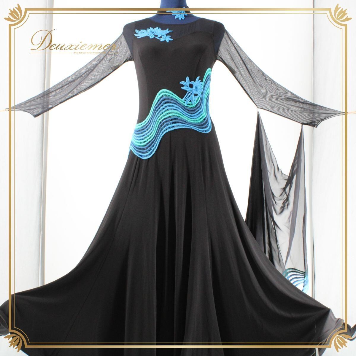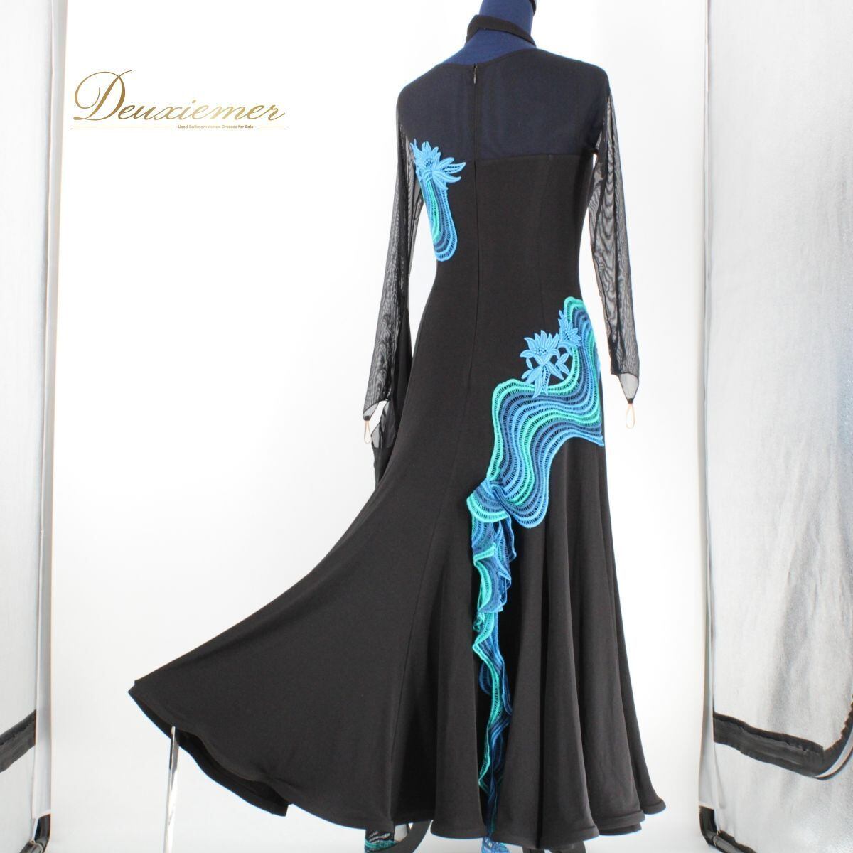 【日本製 社交ダンス衣装】ブラック in the MOOD インザムード ワンピース ドレス 黒 青 水色 パーティ 発表会 フロート