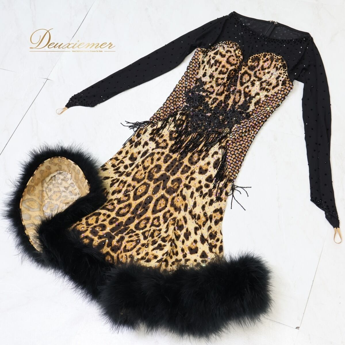 #社交ダンス #ラテンドレス #ダンス衣装 #ヒョウ柄 #華やか #ファッション #ダンススタイル #パーティードレス #女性用衣装 #イベントコスチューム #ダンスパフォーマンス #おしゃれ #ヒョウ模様 #ファー付き #ストレッチ素材 #セクシー #特別な日 #ユニークデザイン #胸パッド #ENUTSU