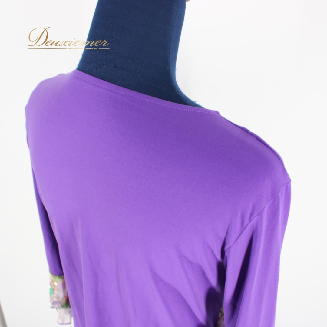 【美品 社交ダンス衣装】上下セット レッスンウェア 練習着 紫 白 緑 グリーン パープル ホワイト ラインストーン 花柄 長袖