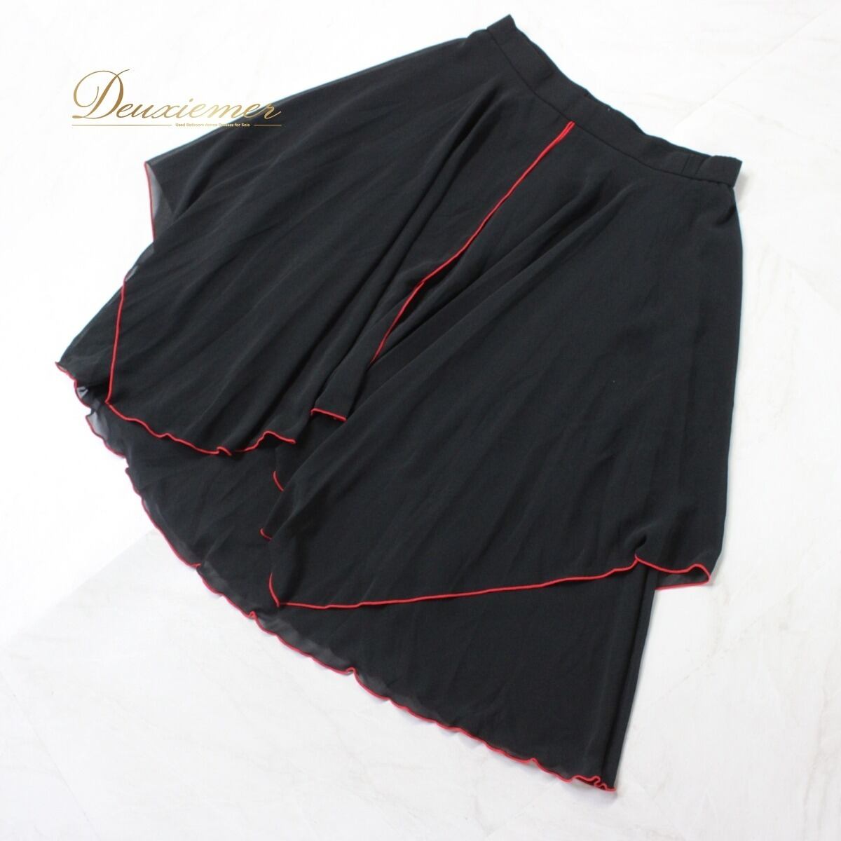 【美品 社交ダンス衣装】スカート レッスンウェア 練習着 Maille Queen 赤 黒 レッド ブラック バイカラー 派手 透け感 上品