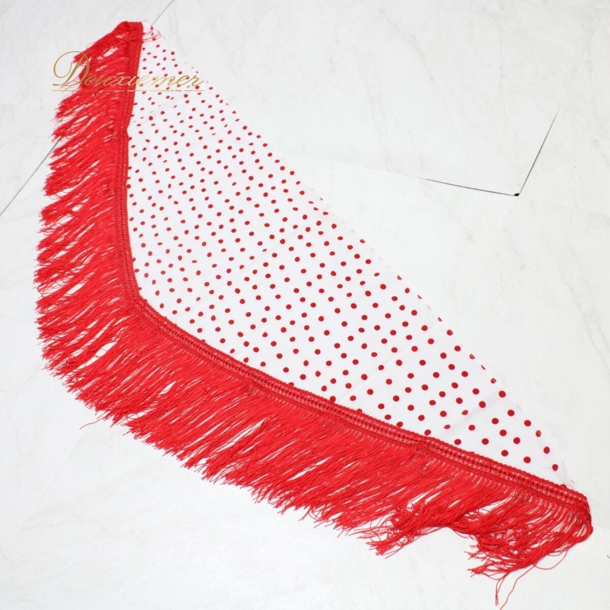 【美品 フラメンコ衣装】ホワイト シージョ ピキージョ 白 赤 レッド ドット 水玉 フレコ トライアングル 三角形 装飾 小物