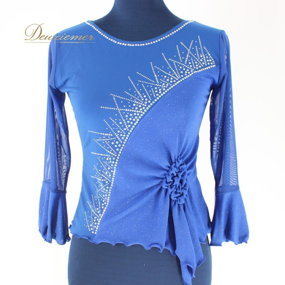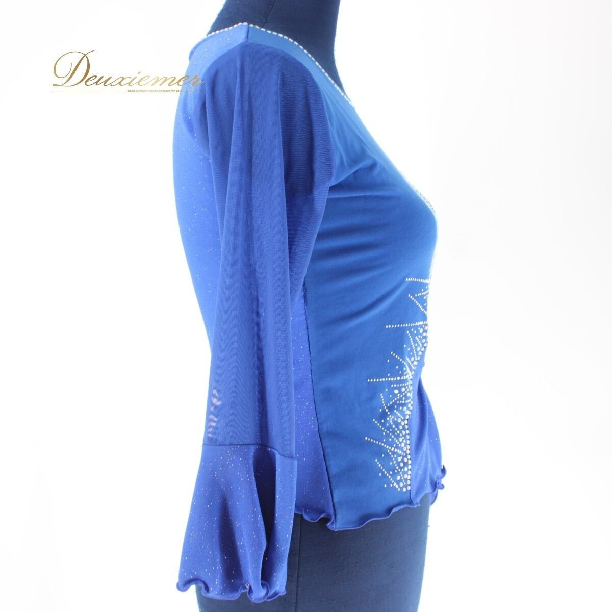 【美品 社交ダンス衣装】トップス レッスンウェア 練習着 エル・プラト 青 ブルー ラインストーン 長袖 キラキラ 上品 気品