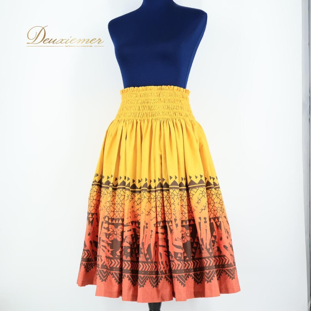 #フラダンス #衣装 #パウスカート #日本製 #アロハスタンダード #イエロー #オレンジ #ブラウン #グラデーション #ダンスウェア #楽器 #フラ #ハワイアン #スタイル #ファッション #カジュアル #ウエストゴム #おしゃれ #ダンス衣装 #ENUTSU
