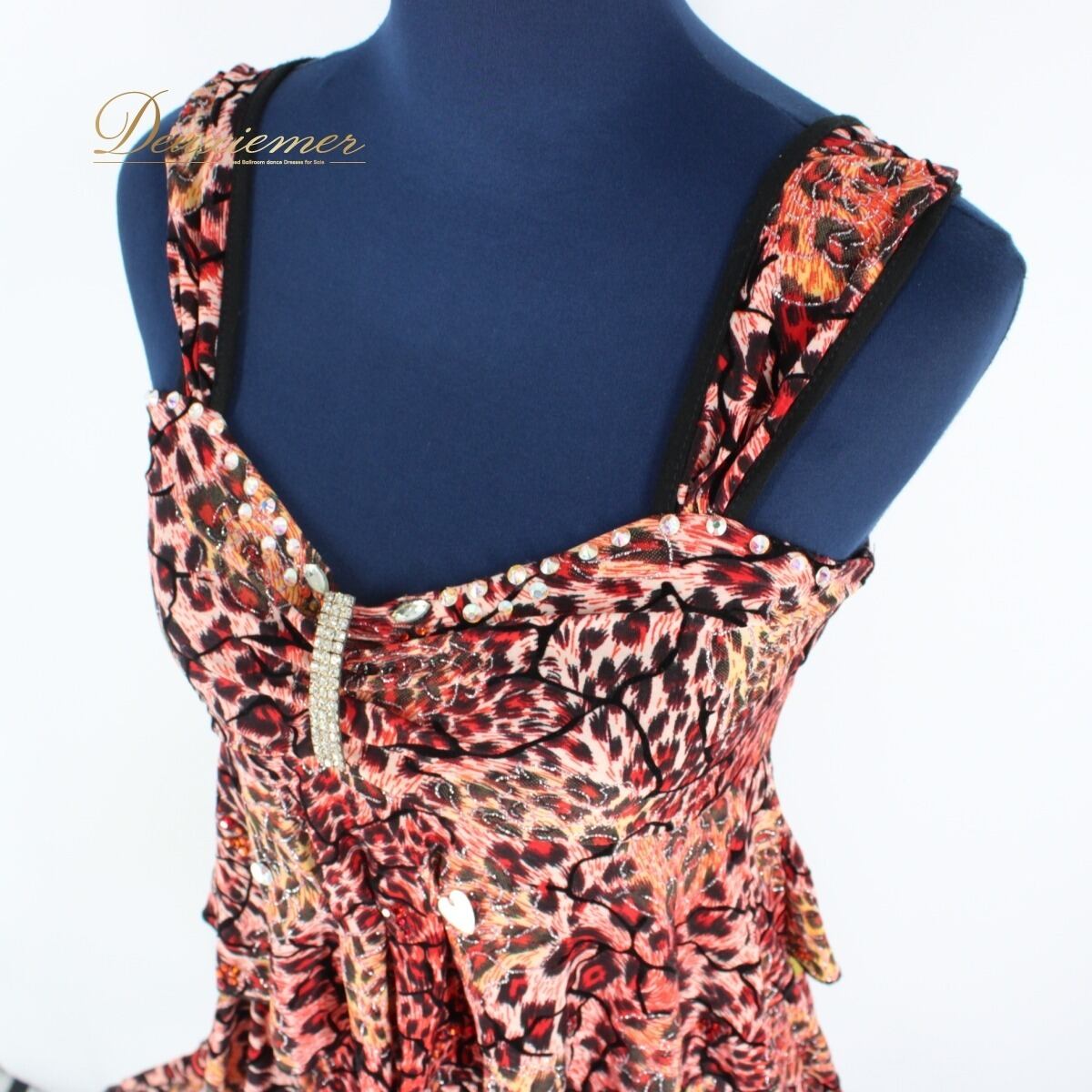 #社交ダンス #ダンス衣装 #ダンスドレス #ドレス #ヒョウ柄 #レッド #ブラック #スパンコール #ラインストーン #ファスナー #伸縮性 #ダンスパフォーマンス #衣装 #踊り #イベント #パーティー #華やか #ファッション #ダンススタイル #ENUTSU