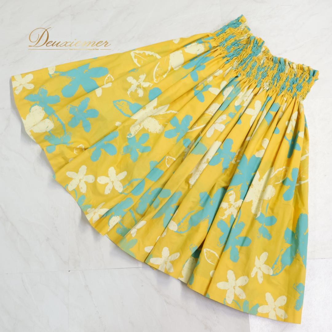 【フラダンス衣装】イエロー パウスカート 花柄 黄 水色 白 明るい 華やか ホワイト ハワイアン アロハ ふんわり かわいい
