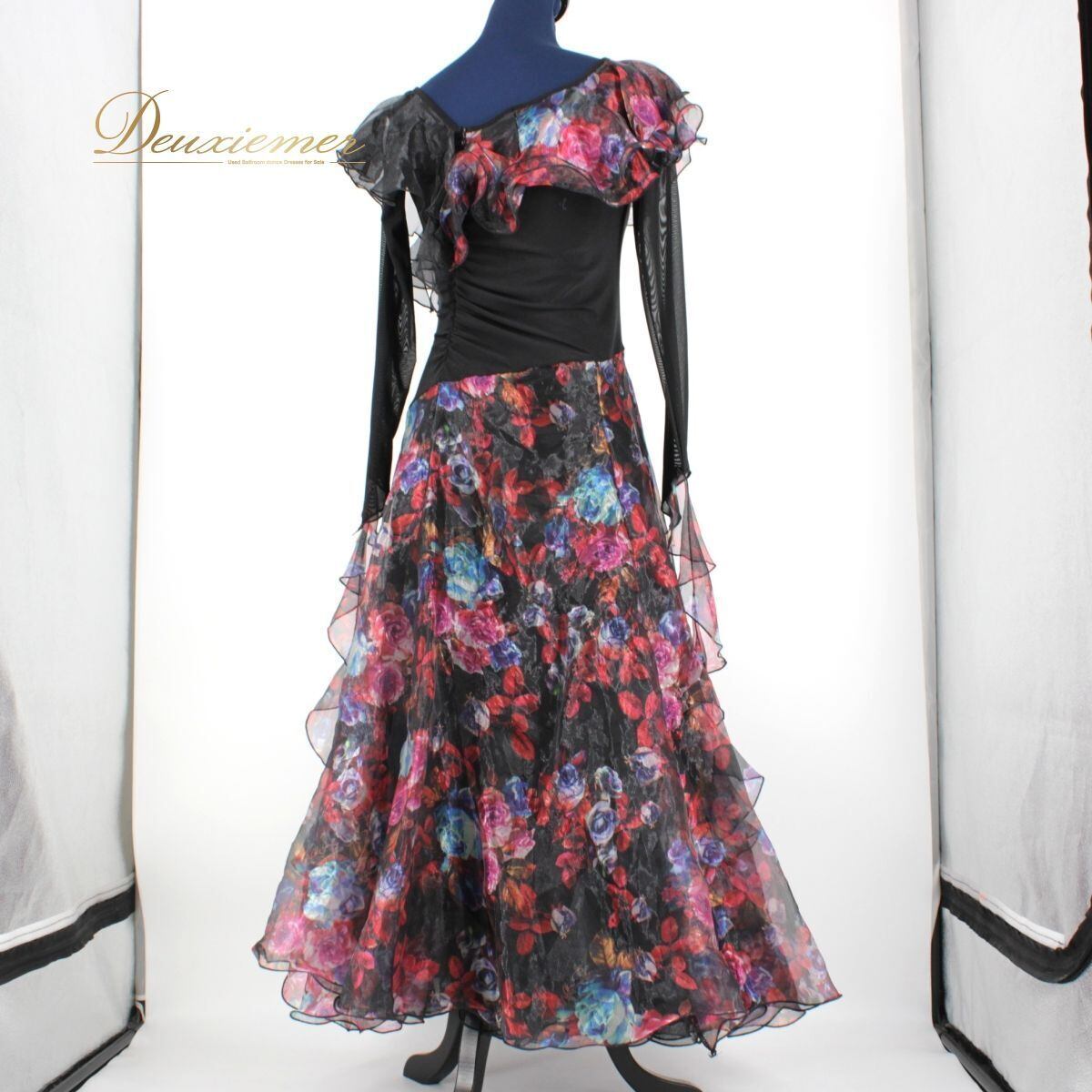 #社交ダンス #ダンス衣装 #ドレス #シックデザイン #花柄 #ブラック #レッド #パープル #ファスナー #伸縮性 #パーティー #コンペ #エレガント #女性用 #アウトフィット #ダンスファッション #ファッション #おしゃれ #コスチューム #ENUTSU