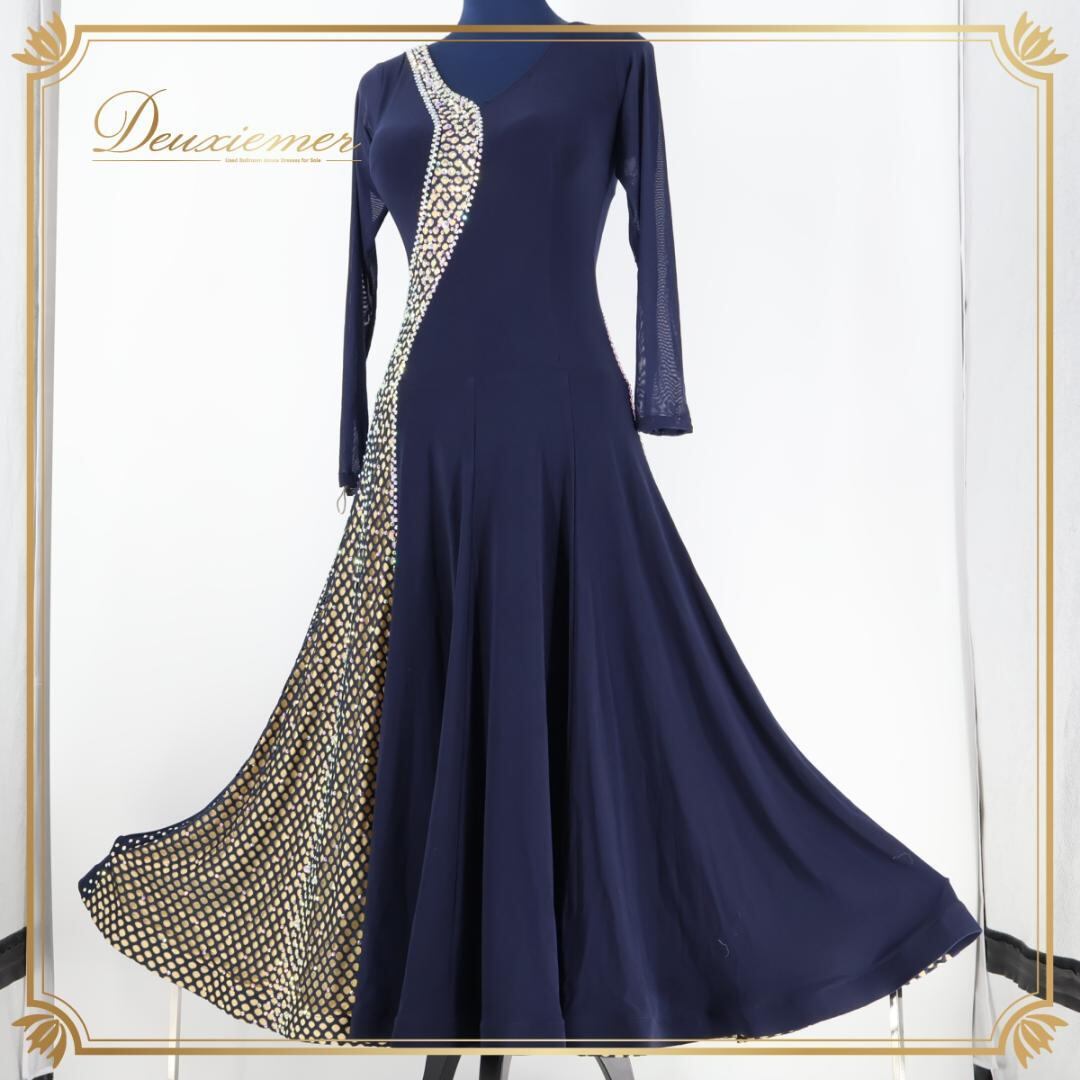 #社交ダンス #ダンス衣装 #ワンピース #ドレス #ネイビー #ラインストーン #伸縮性 #動きやすい #背面ファスナー #レオタード #スタイル #おしゃれ #ダンスファッション #セクシー #エレガント #パーティー #特別な日 #ダンスイベント #コスチューム #ENUTSU