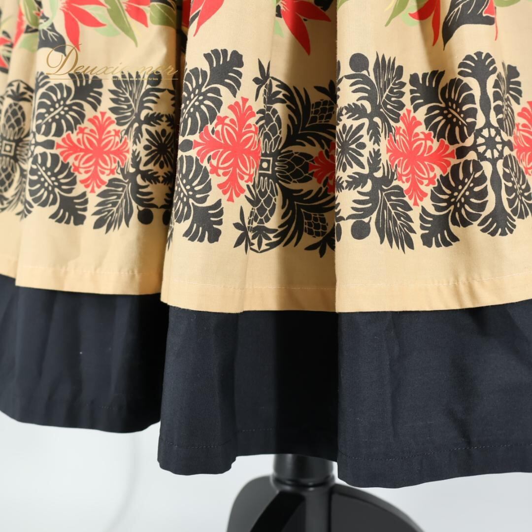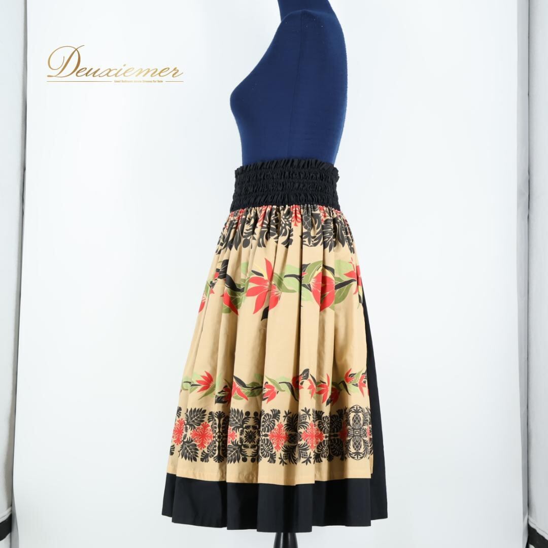 【フラダンス衣装】ベージュ パウスカート 赤 緑 黒 葉っぱ柄 レッド グリーン ブラック ハワイアンプリント アロハ かわいい