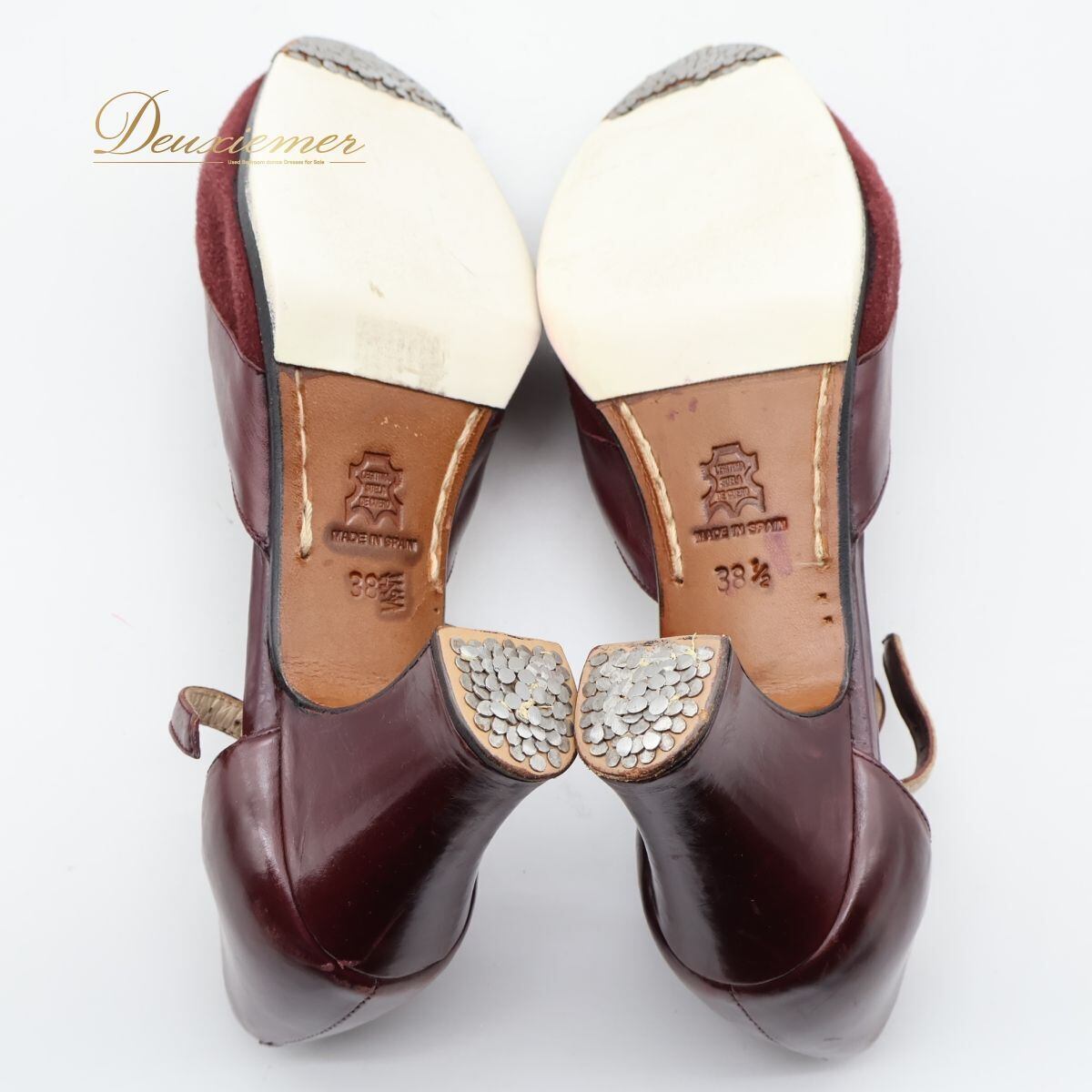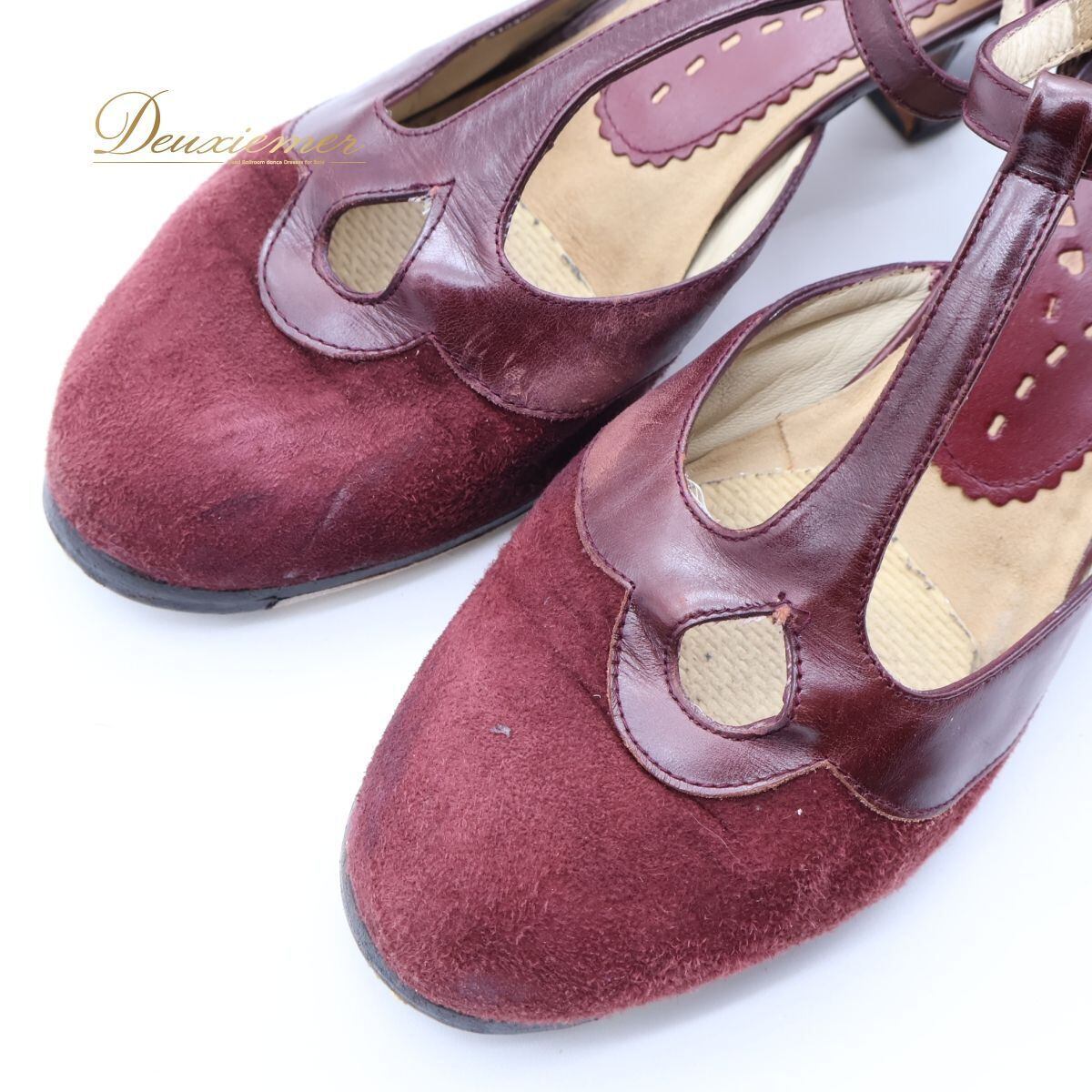 【スペイン製 フラメンコ衣装】サイズ38 1/2 ワインレッド buleria シューズ 靴 ヒール スウェード 小豆色 釘あり ダンス用