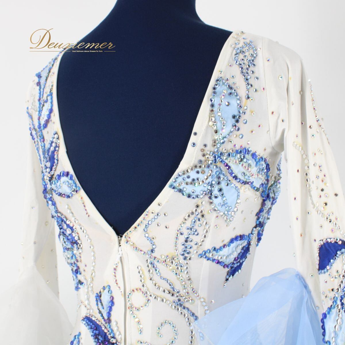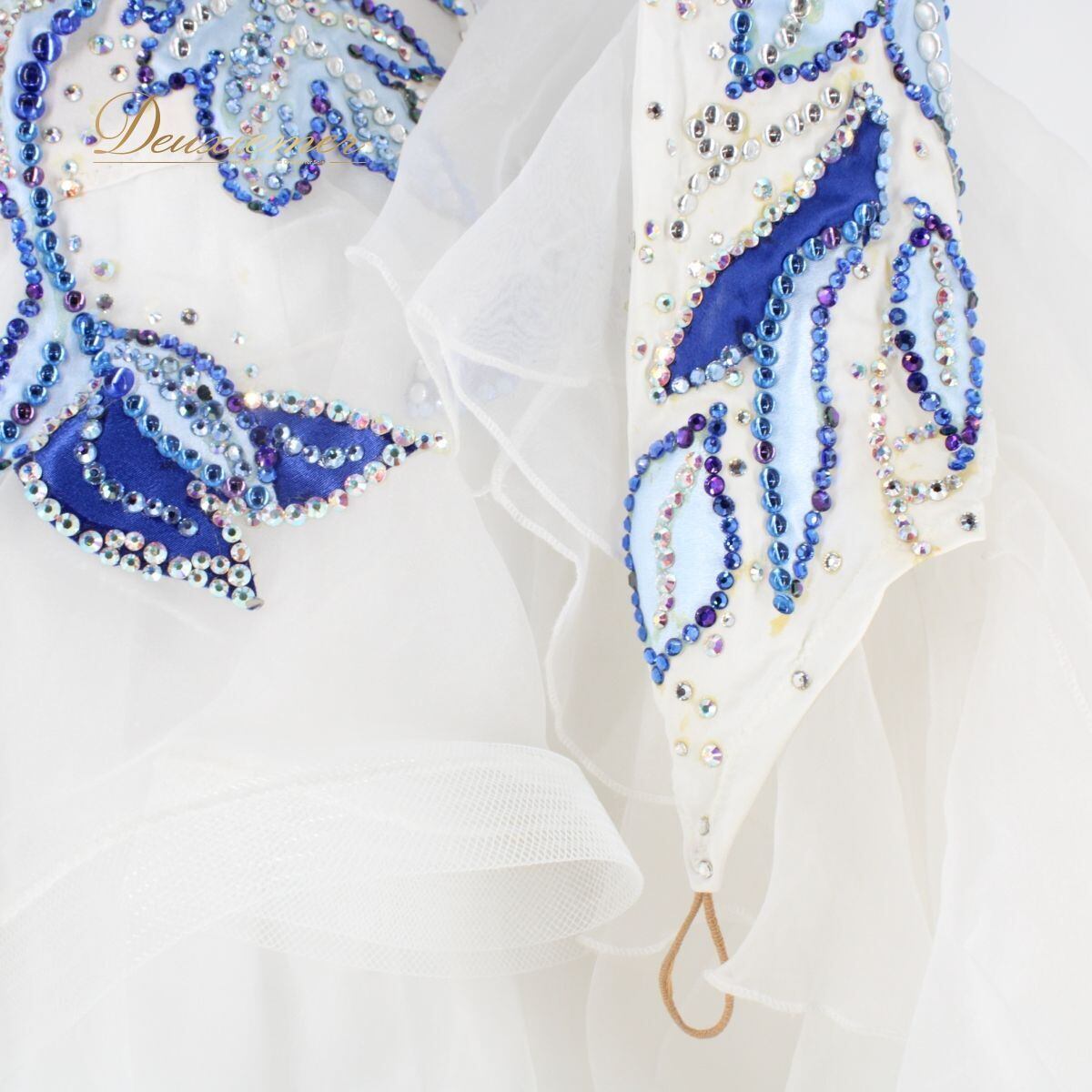 【社交ダンス衣装】ホワイト ワンピース ドレス 青 ブルー 白 フリル フロート レース デモ 競技用 レディース ダンス用