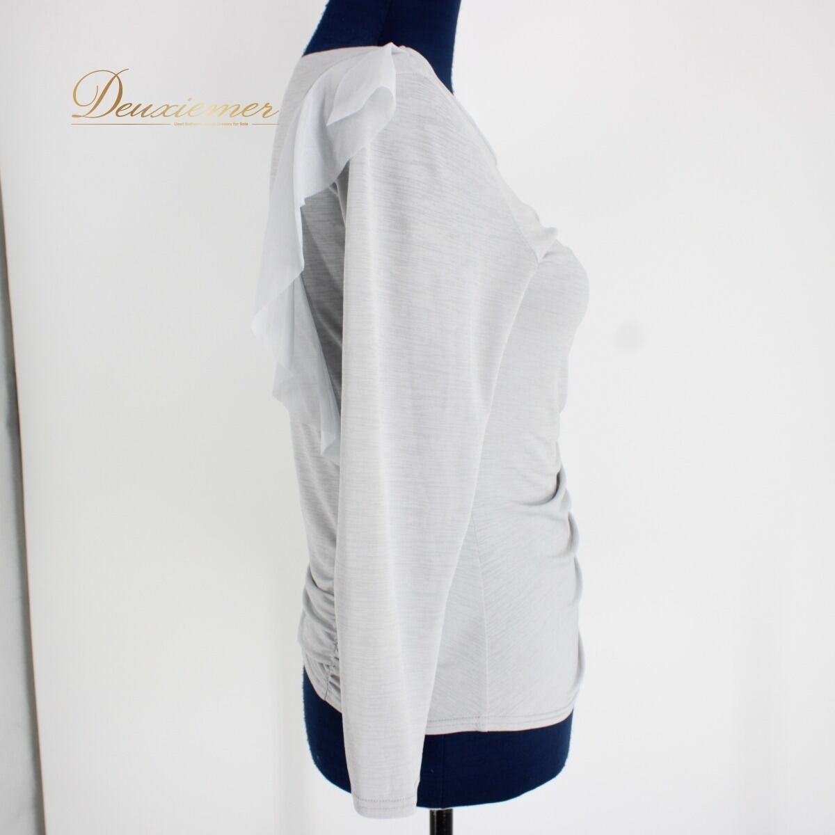 【美品 日本製社交ダンス衣装】トップス レッスンウェア 練習着 papiral Mサイズ ライトグレー 無地 シンプル 長袖 上品 清楚