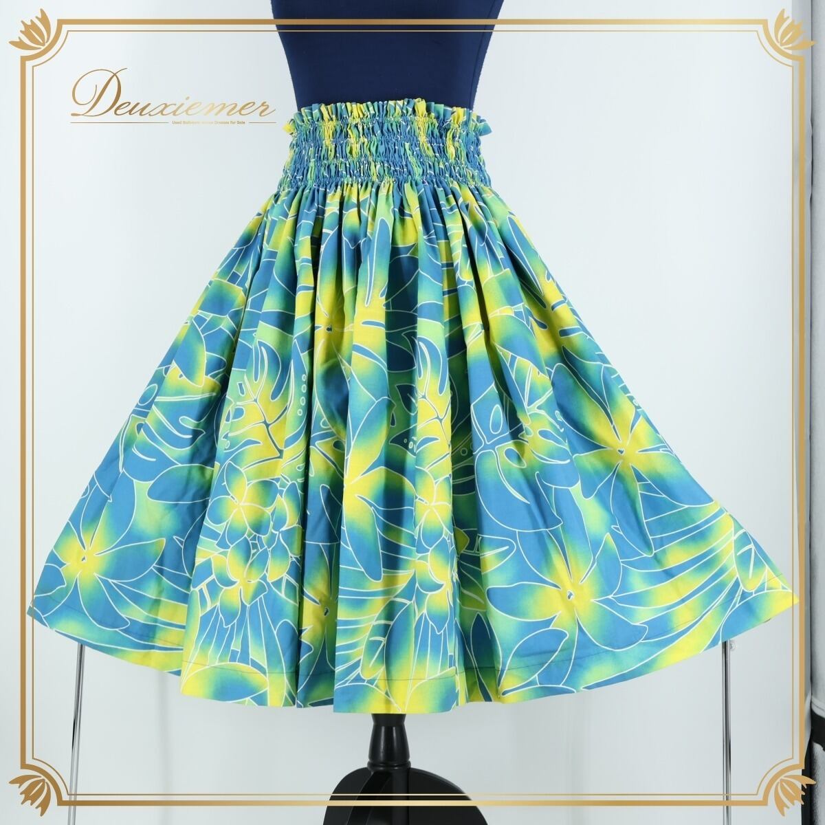 【フラダンス衣装】ブルー パウスカート 青 黄 ティアレ柄 花柄 イエロー 鮮やか 華やか ハワイアンプリント アロハ かわいい