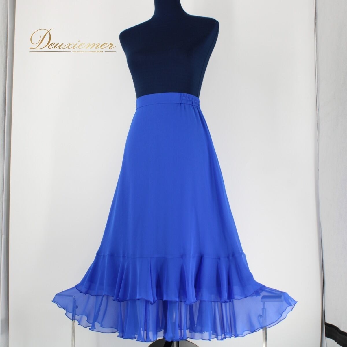 【日本製 社交ダンス衣装】ブルー Chacott チャコット スカート 青 フリル レース 軽い 薄い パーティ 発表会 無地 レッスン