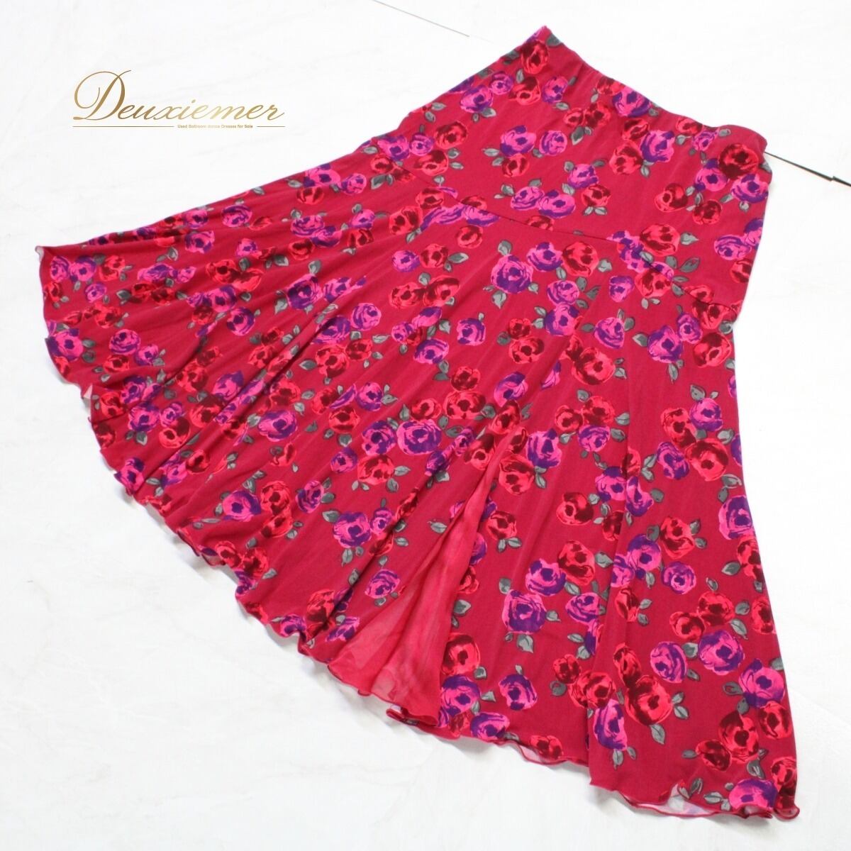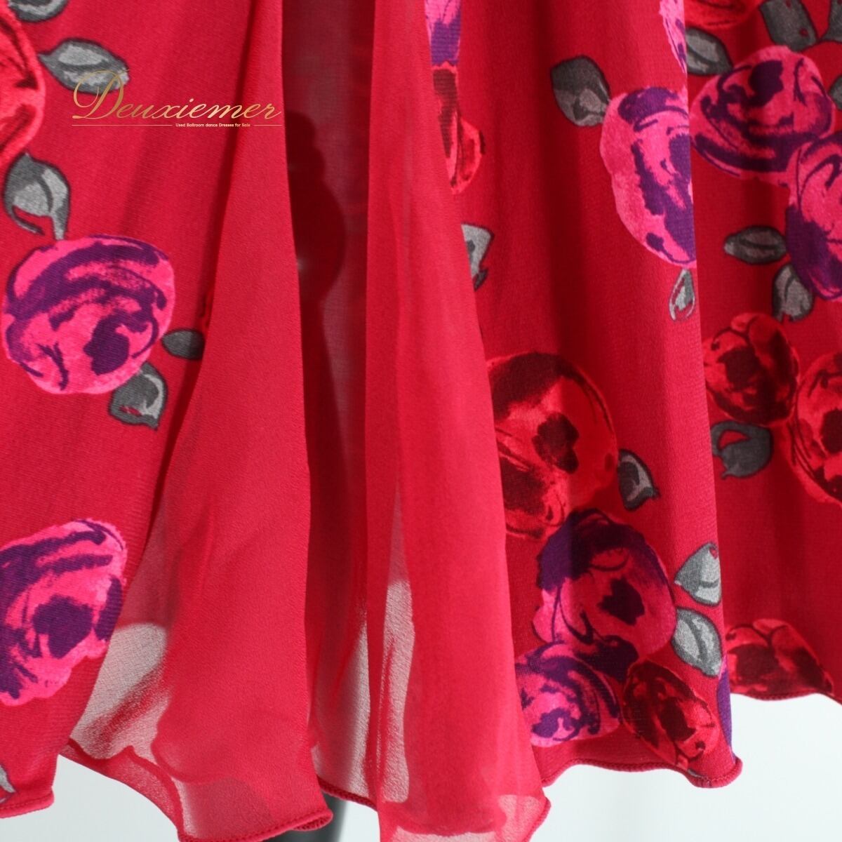 【美品 日本製 社交ダンス衣装】パープル Chacott チャコット スカート 花柄 ストレッチ 伸縮 レッスン パーティ ピンク ゴム