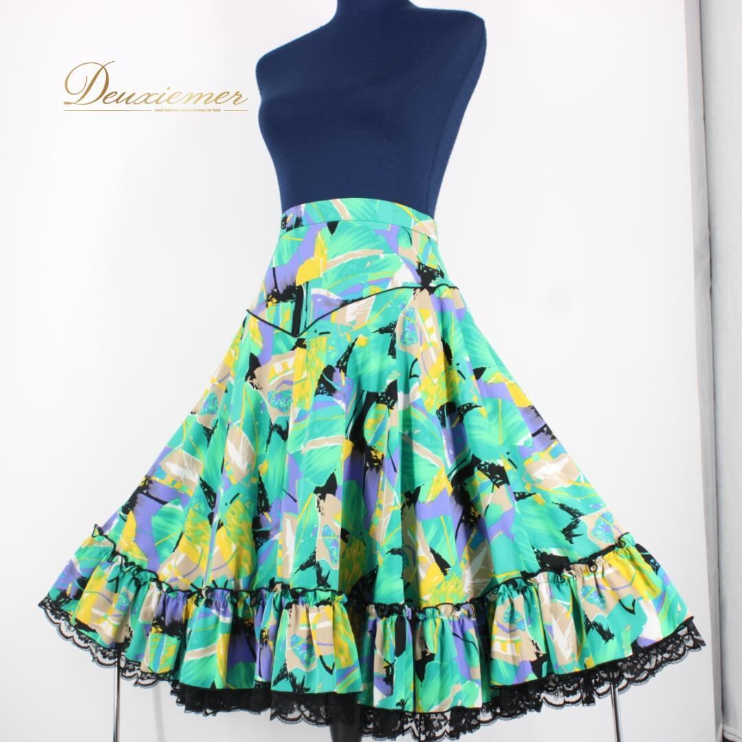 【美品 日本製社交ダンス衣装】スカート レッスンウェア 練習着 SEKINE セキネ Mサイズ 9号 緑 青 黄色 紫 白 グリーン ブルー