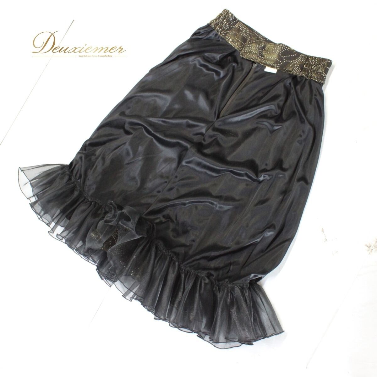 【美品 社交ダンス衣装】スカート レッスンウェア 練習着 黒 金 ブラック ゴールド 上品 派手 華やか シック 気品 シンプル