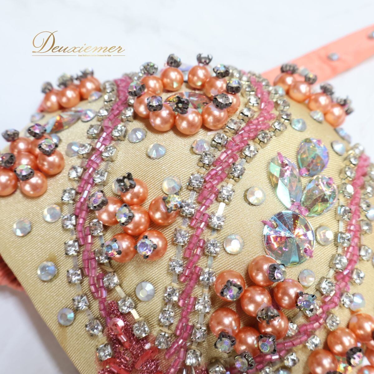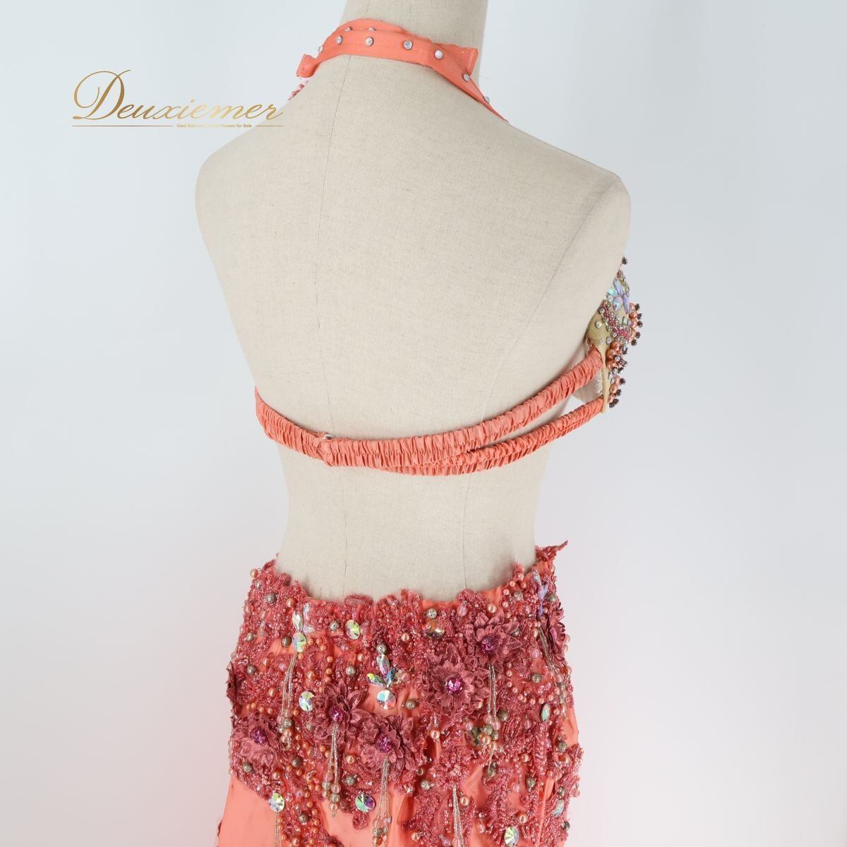 【ベリーダンス用 オリエンタル衣装】サーモンピンク ラインストーン ビーズ サテン シルバー ピンク オレンジ 可愛い お洒落