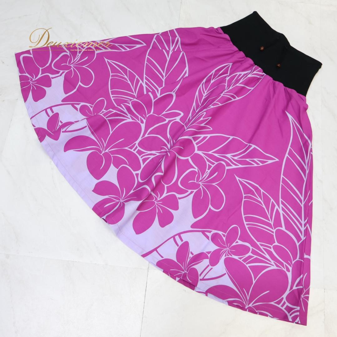 【日本製 フラダンス衣装】パープル ALOHA STANDARDS アロハスタンダード スカート プルメリア柄 紫 黒 ブラック かわいい 花