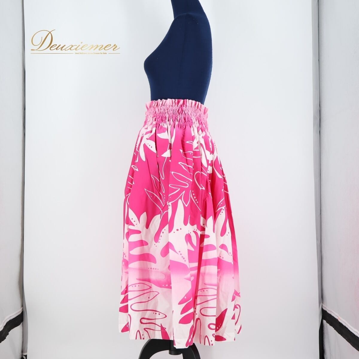 【フラダンス衣装】ピンク パウスカート 白 ホワイト 鮮やか 華やか ハワイアンプリント アロハ シングル 明るい かわいい