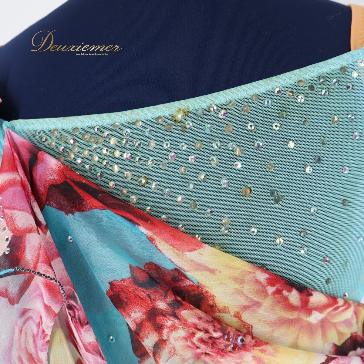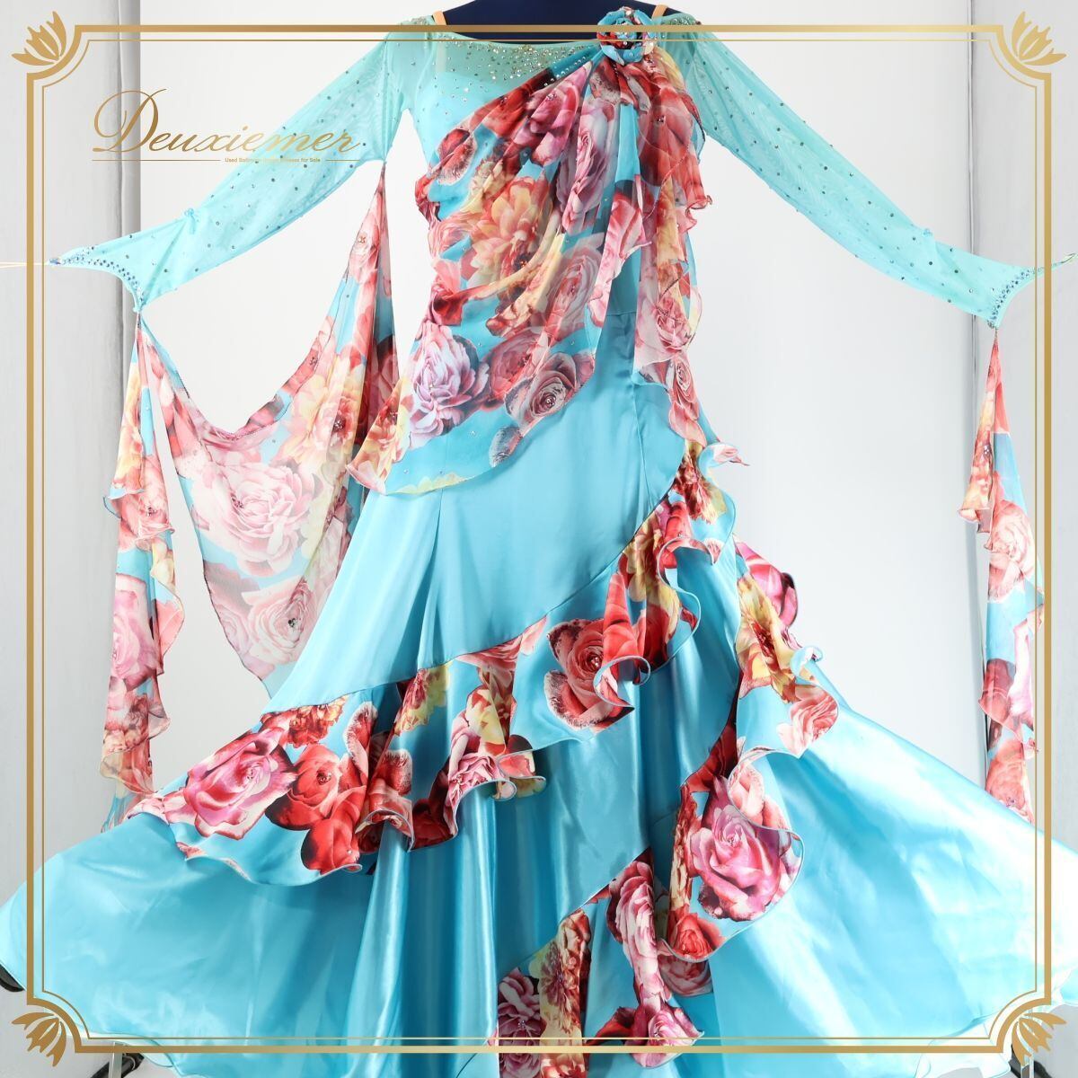 #社交ダンス #ダンス衣装 #ワンピース #ドレス #セキネ #水色 #花柄 #ダンスファッション #おしゃれ #エレガント #女性用 #ファスナー #伸縮性 #胸パッド #イベント #パーティー #フィットネス #魅力的 #スタイル #ENUTSU