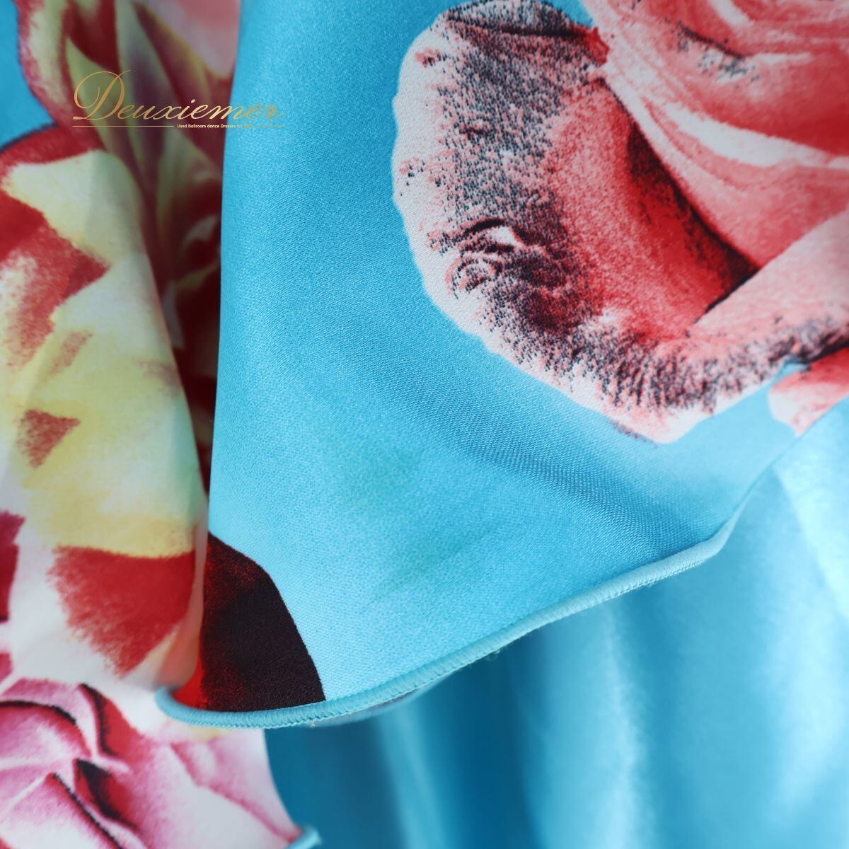 【日本製 社交ダンス衣装】ブルー SEKINE セキネ ワンピース ドレス 水色 青 フリル 花柄 赤 フロート ダンス パーティ レース