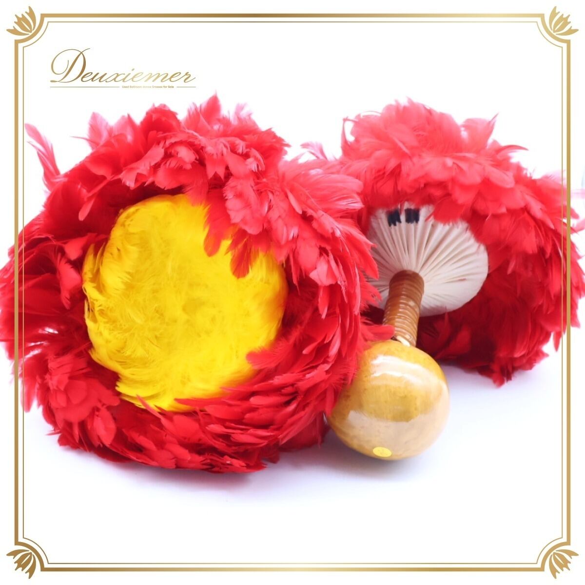 【フラダンス 小物】レッド イエロー ウリウリ マラカス 楽器 赤 黄色 タヒチアンダンス 民族舞踊 羽 ファー ダンス用 両手