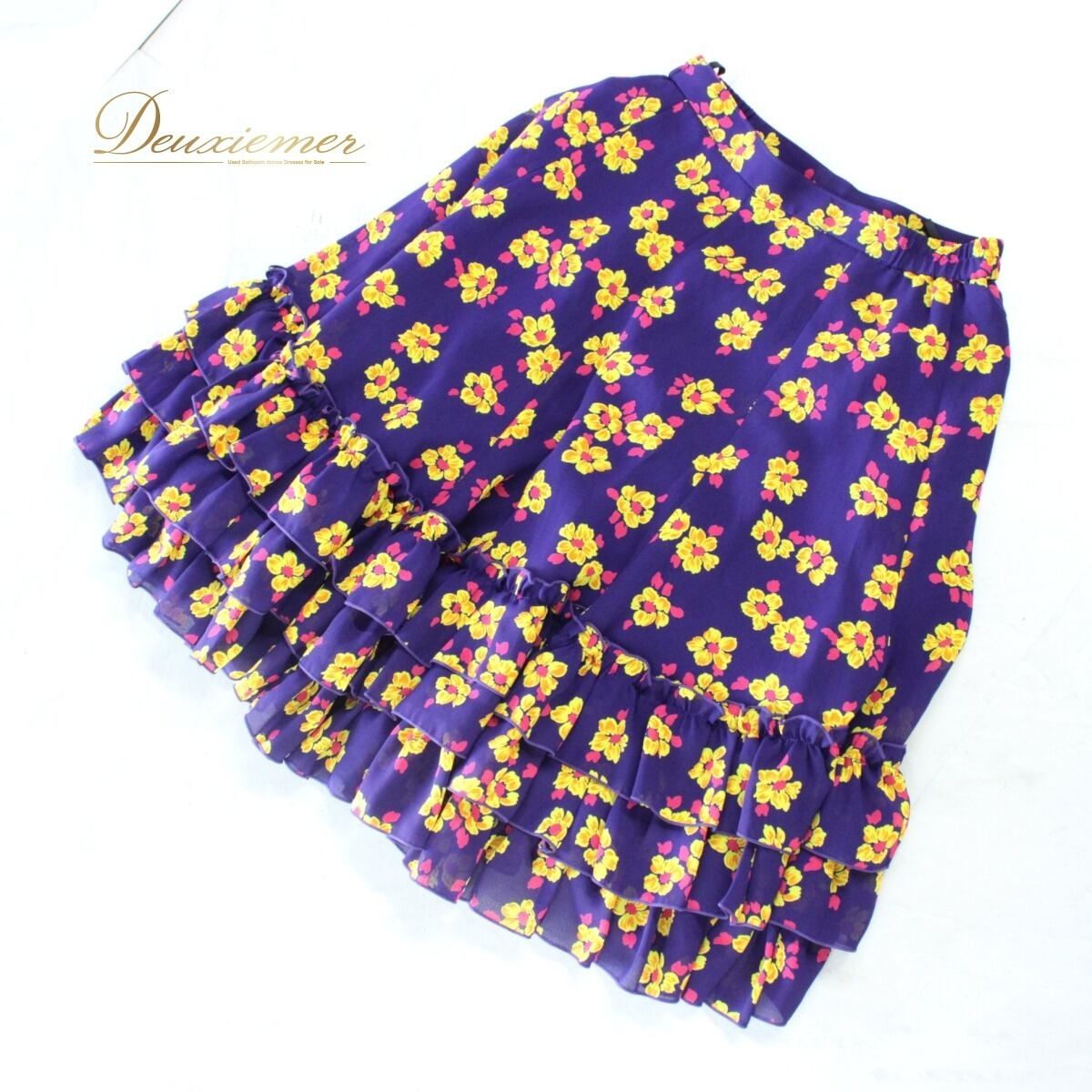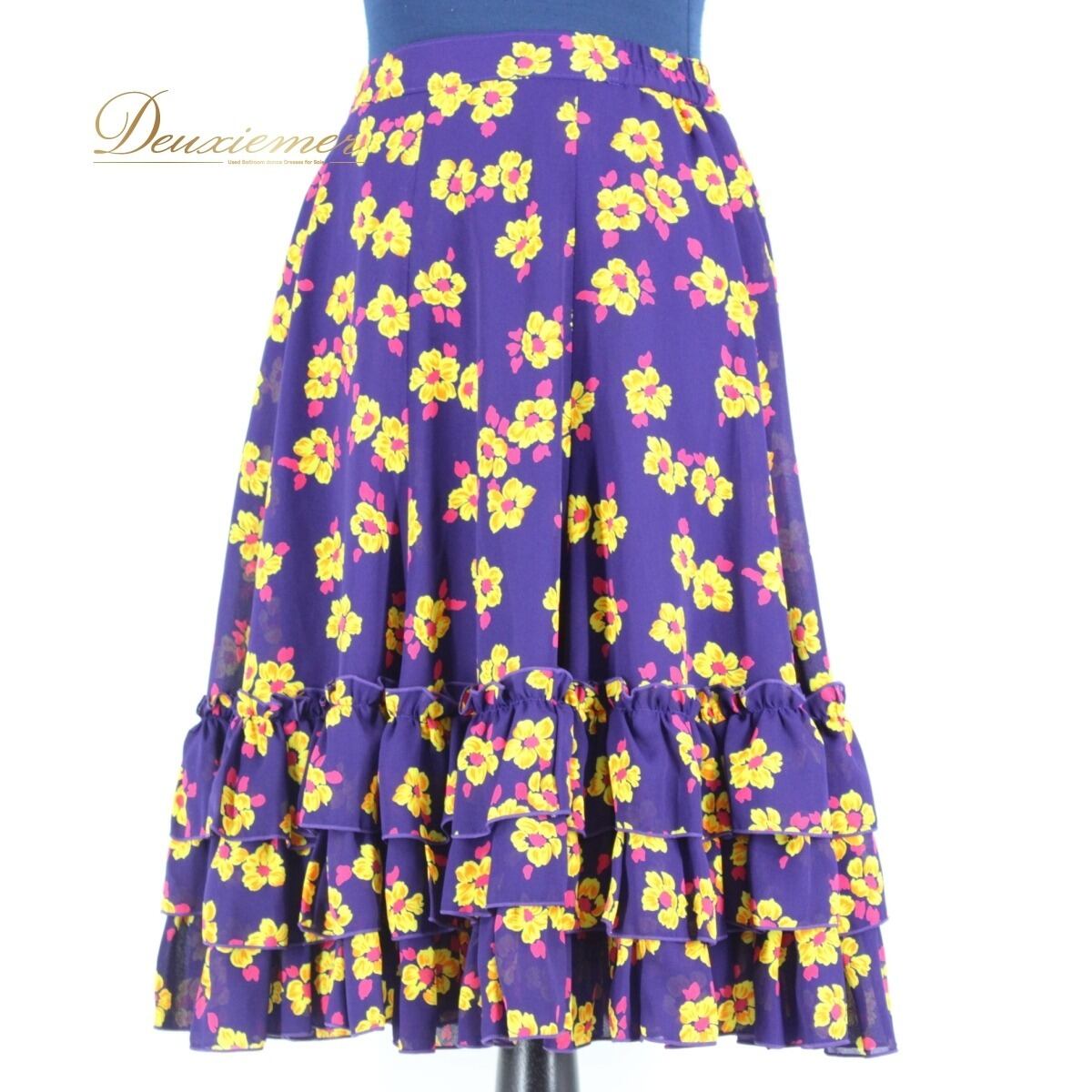 【美品 日本製社交ダンス衣装】スカート レッスンウェア 練習着 紫 黄色 パープル イエロー オレンジ ピンク 花柄 派手 鮮やか