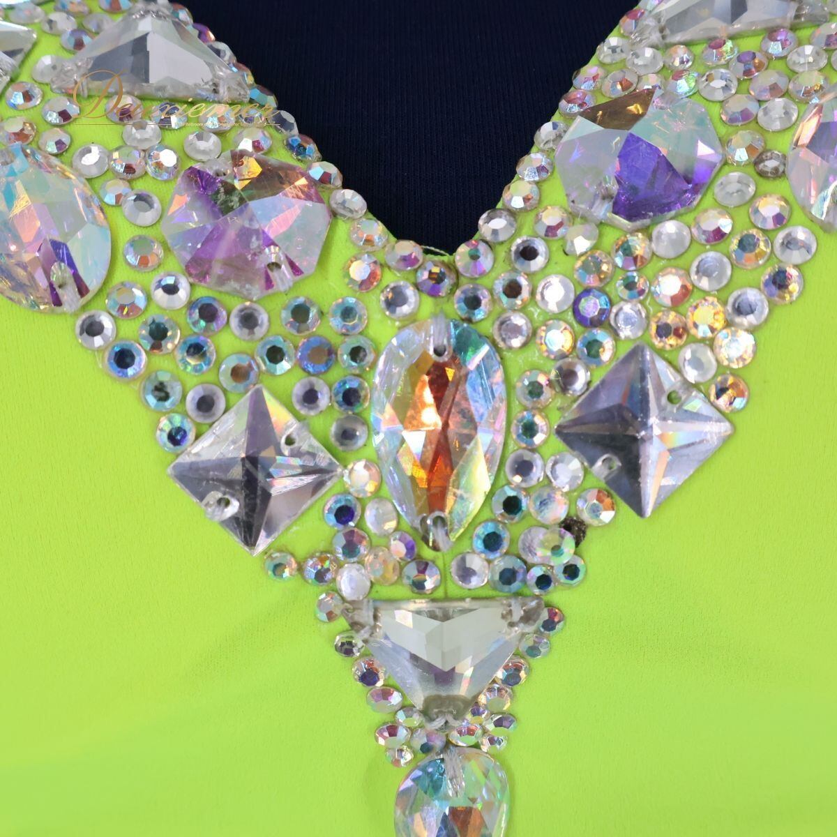 【社交ダンス衣装】イエロー JUNO ジュノー ワンピース ドレス 蛍光 黄色 アームカバー 無地 レース 軽い 薄い 綺麗 黄緑