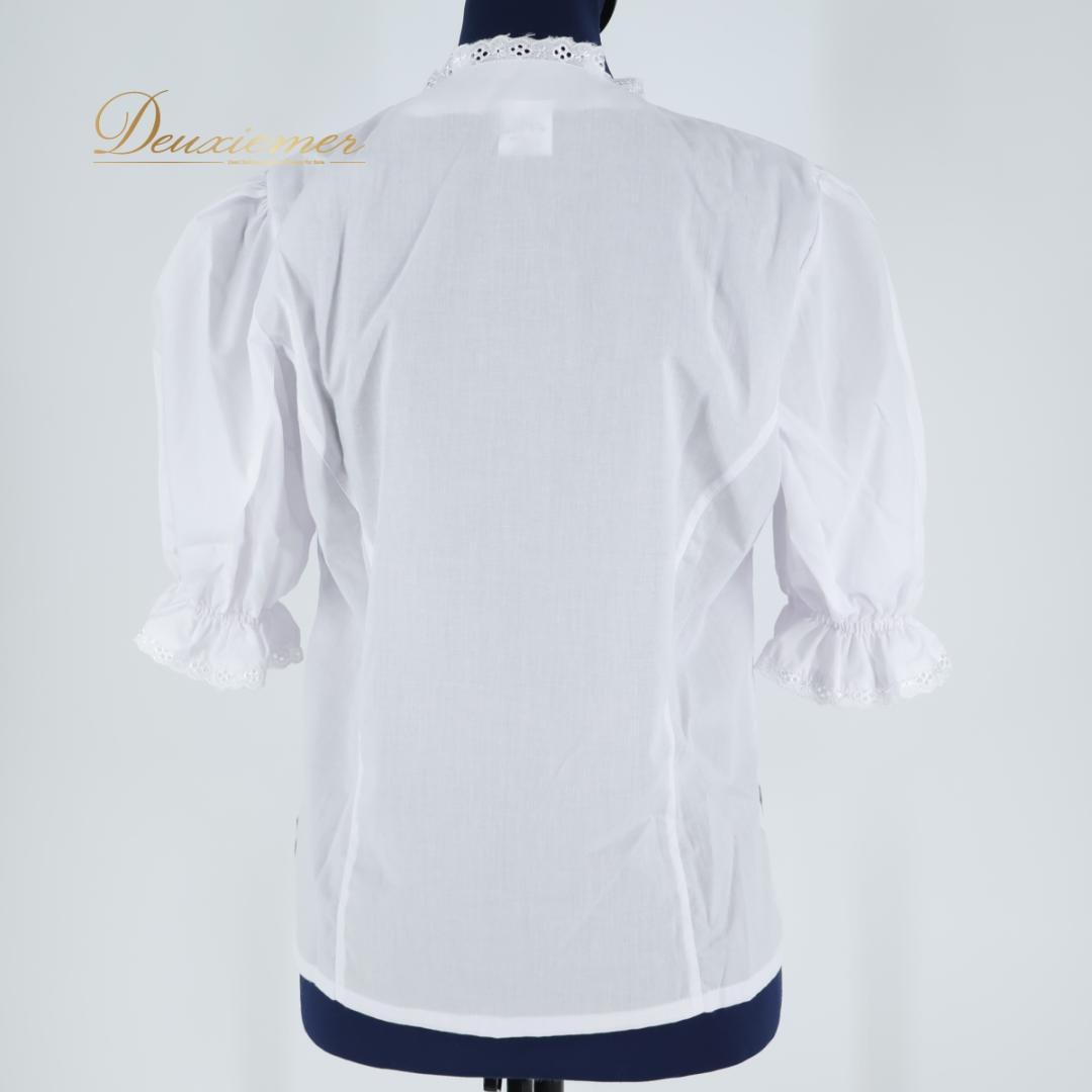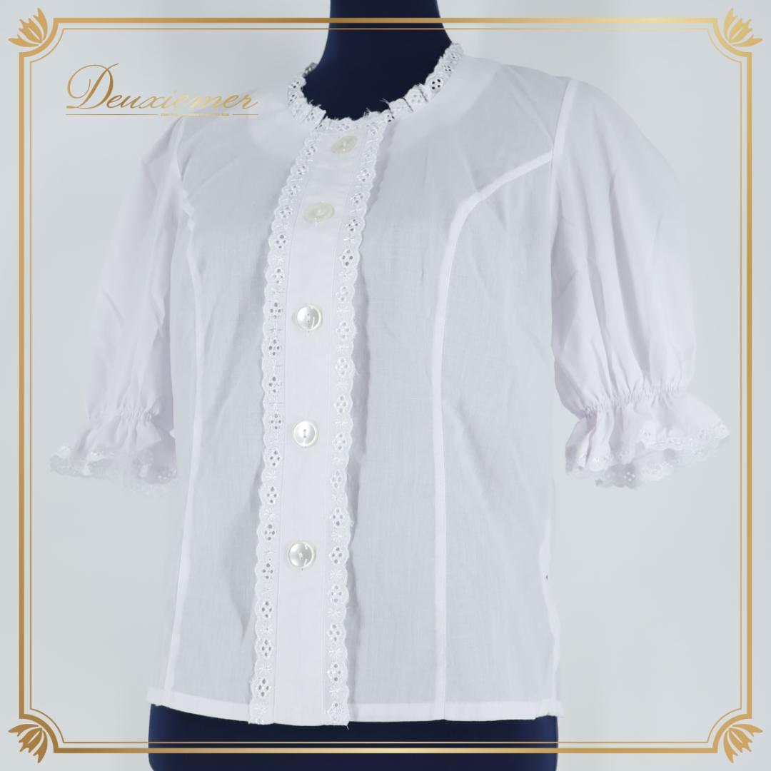 【フォークダンス衣装】ホワイト トップス ブラウス 白 刺繍 五分袖 爽やか 明るい ボタン 絞り 軽い スカラップ かわいい 花