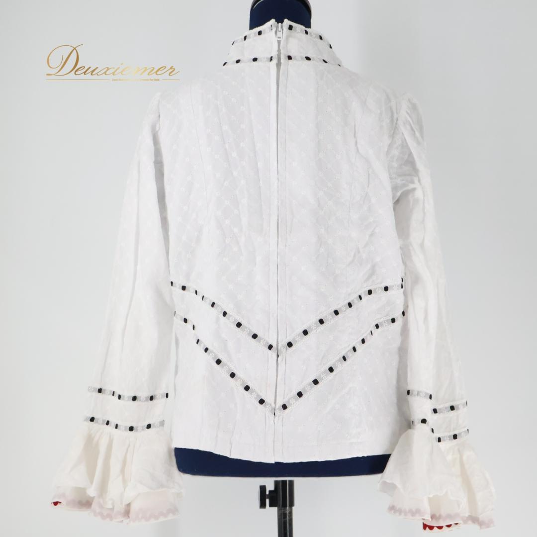 【フラメンコ衣装】ホワイト ブラウス トップス 白 黒 フリル レース リボン 梯子リボン 襟 お洒落 華やか 長袖 ダンス用 送料無料 匿名配送