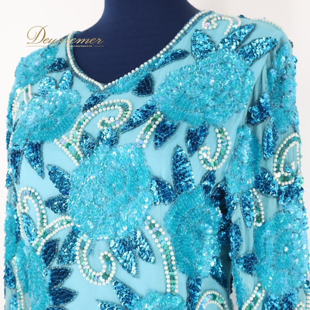 #社交ダンス #ワンピースドレス #ブルー #Mamin #マーミン #ゴージャスドレス #装飾デザイン #ステージ映え #発表会ドレス #大人エレガント #パーティードレス #ダンスウェア #ドレススタイル #ブルードレス #ラグジュアリーファッション #クラシカル #ビジュードレス #ノースリーブドレス #ステージコーデ #ダンス衣装 #ダンスコスチューム #ステージ衣装 #古着 #中古 #ENUTSU