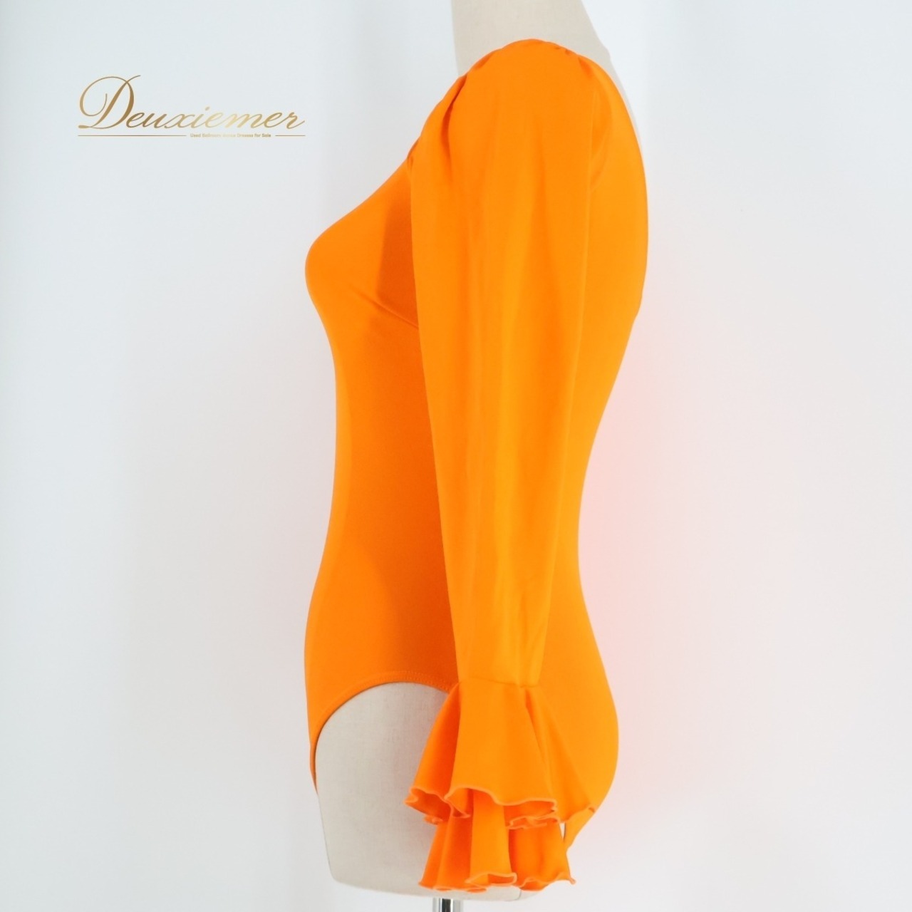 【美品 日本製 バレエ衣装】オレンジ Chacott チャコット レオタード 無地 長袖 フリル 伸縮 レッスン 練習着 インナー ダンス