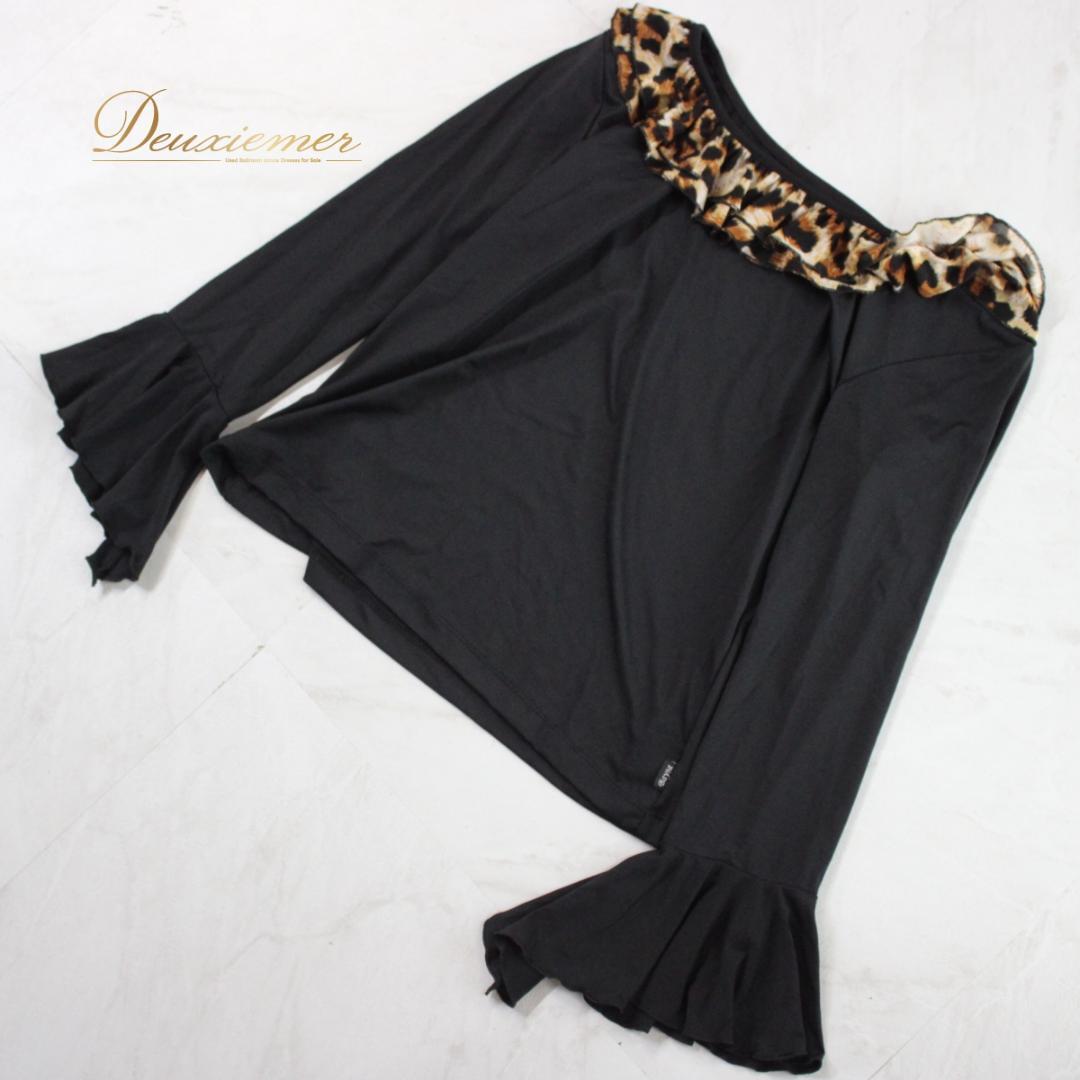 【美品 社交ダンス衣装】上下セット レッスンウェア パーティー Baysa 黒 ブラック 茶色 ブラウン ベージュ ヒョウ柄 Lサイズ