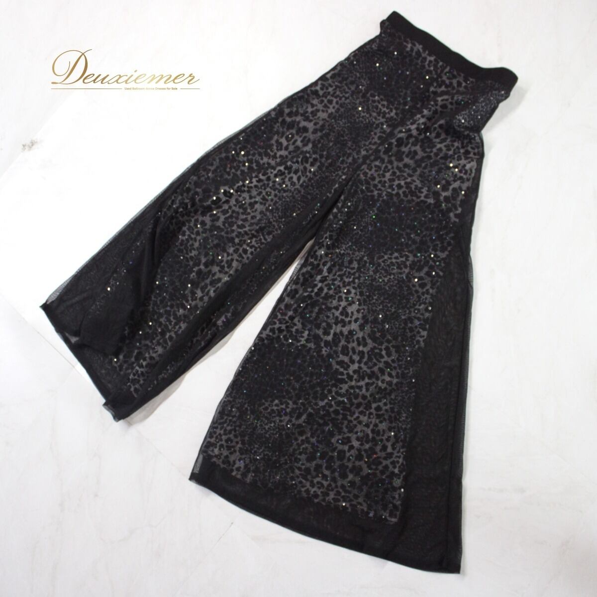 【美品タグ付き 社交ダンス衣装】パンツ ズボン ボトムス INIZIO レッスンウェア パーティー 黒 ブラック ヒョウ柄 グレー