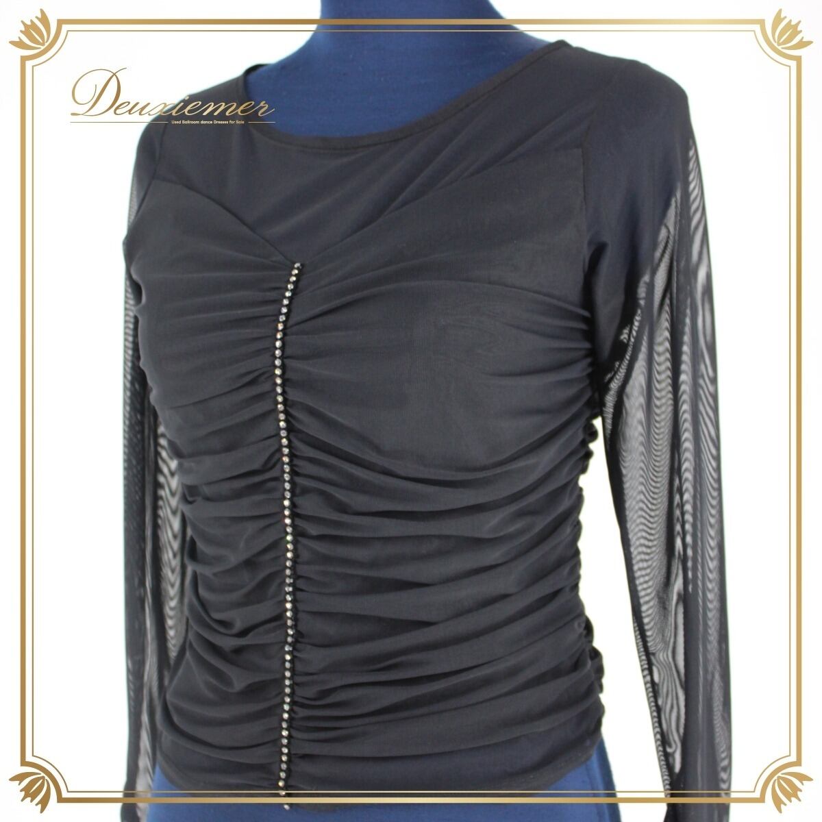 【美品 日本製社交ダンス衣装】トップス レッスンウェア 練習着 パーティー Mサイズ 黒 ブラック ラインストーン シンプル