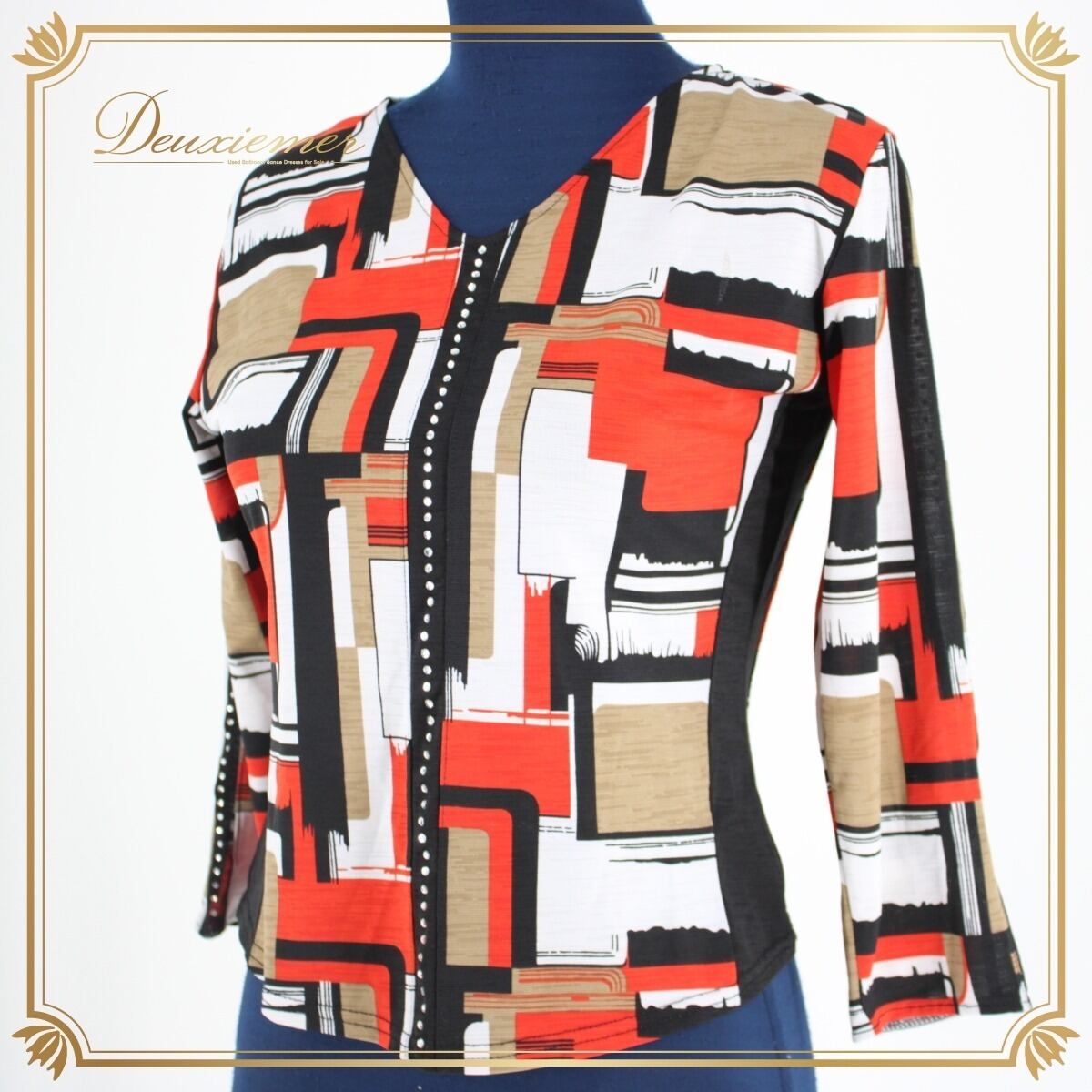 【美品 社交ダンス衣装】トップス レッスンウェア 練習着 Lサイズ 長袖 ラインストーン レッド カーキ ブラック ホワイト 赤