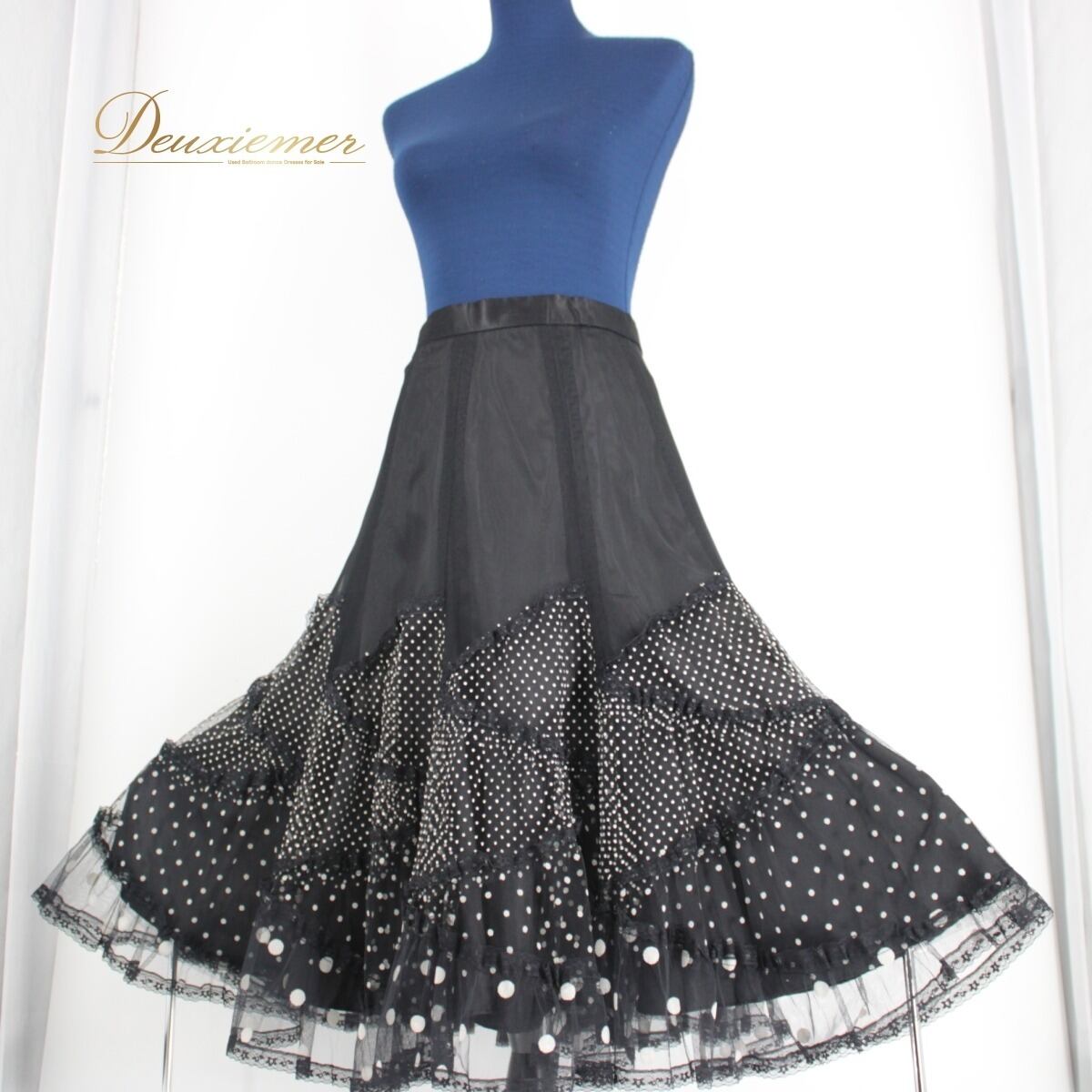 【美品 日本製社交ダンス衣装】スカート レッスンウェア パーティー 英吉利 Mサイズ 黒 白 ブラック ホワイト ドット 水玉