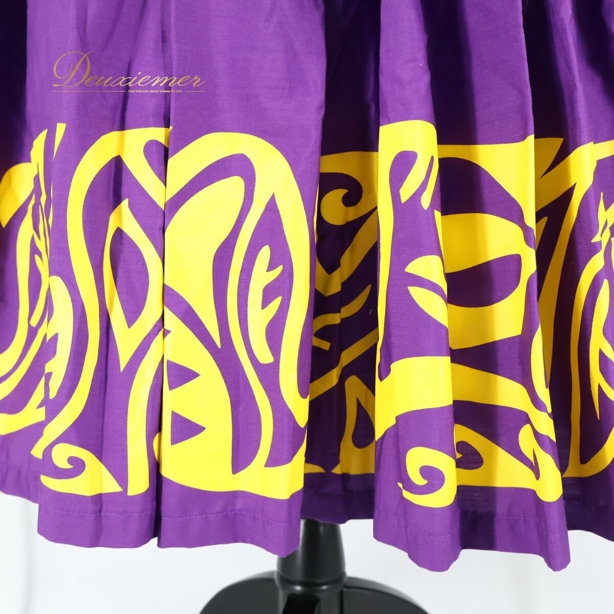 【日本製 フラダンス衣装】パープル ICHIRO パウスカート 紫 黄 鮮やか ハワイアンプリント イエロー アロハ かわいい ゴム