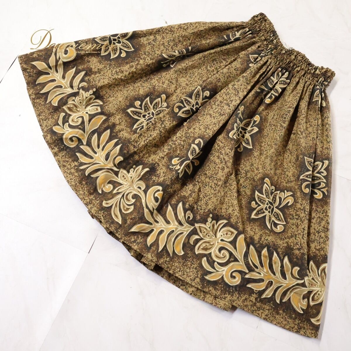 【フラダンス衣装】ブラウン パウスカート 茶 黒 ベージュ 花柄 ハワイアンプリント アロハ ブラック ふんわり かわいい ゴム