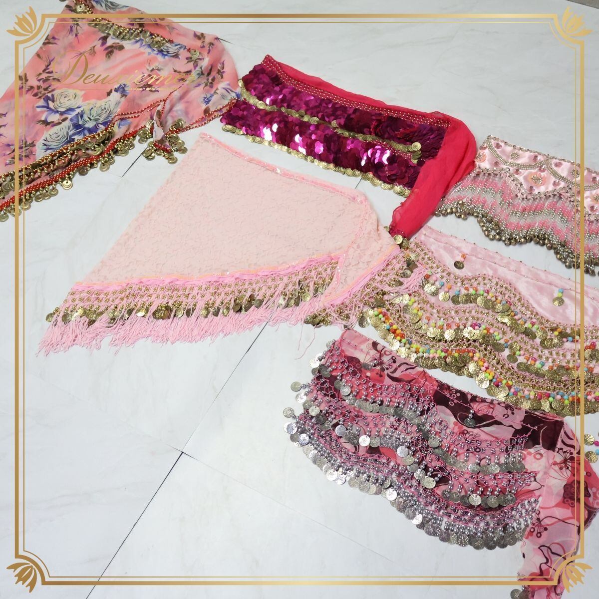 【ベリーダンス衣装 小物 まとめ売り】全6点セット ヒップスカーフ ビーズ コイン ピンク ゴールド シルバー ラメ かわいい