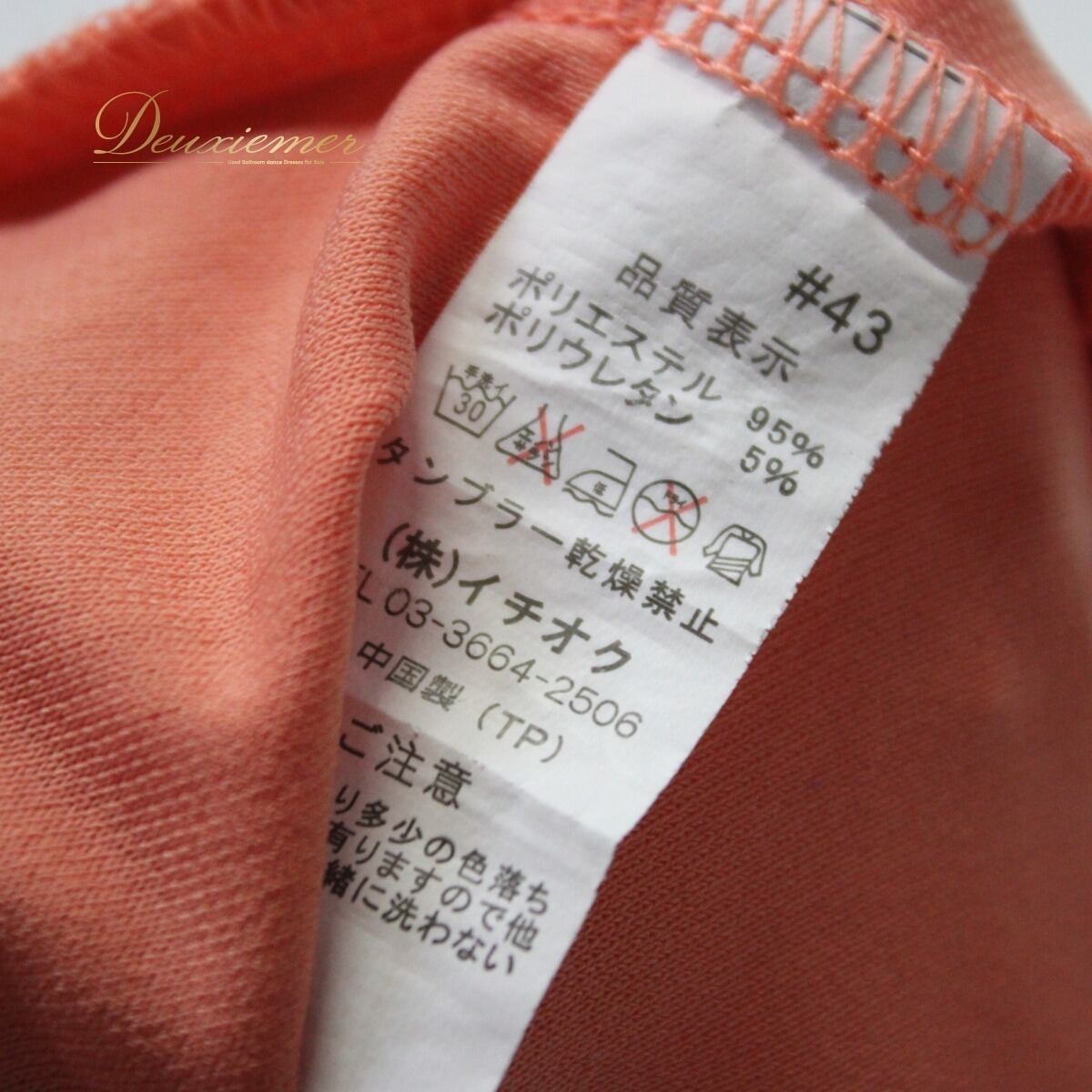 【美品 社交ダンス衣装】トップス レッスンウェア 練習着 ICHIOKU イチオク オレンジ コーラル 無地 シンプル 長袖 華やか
