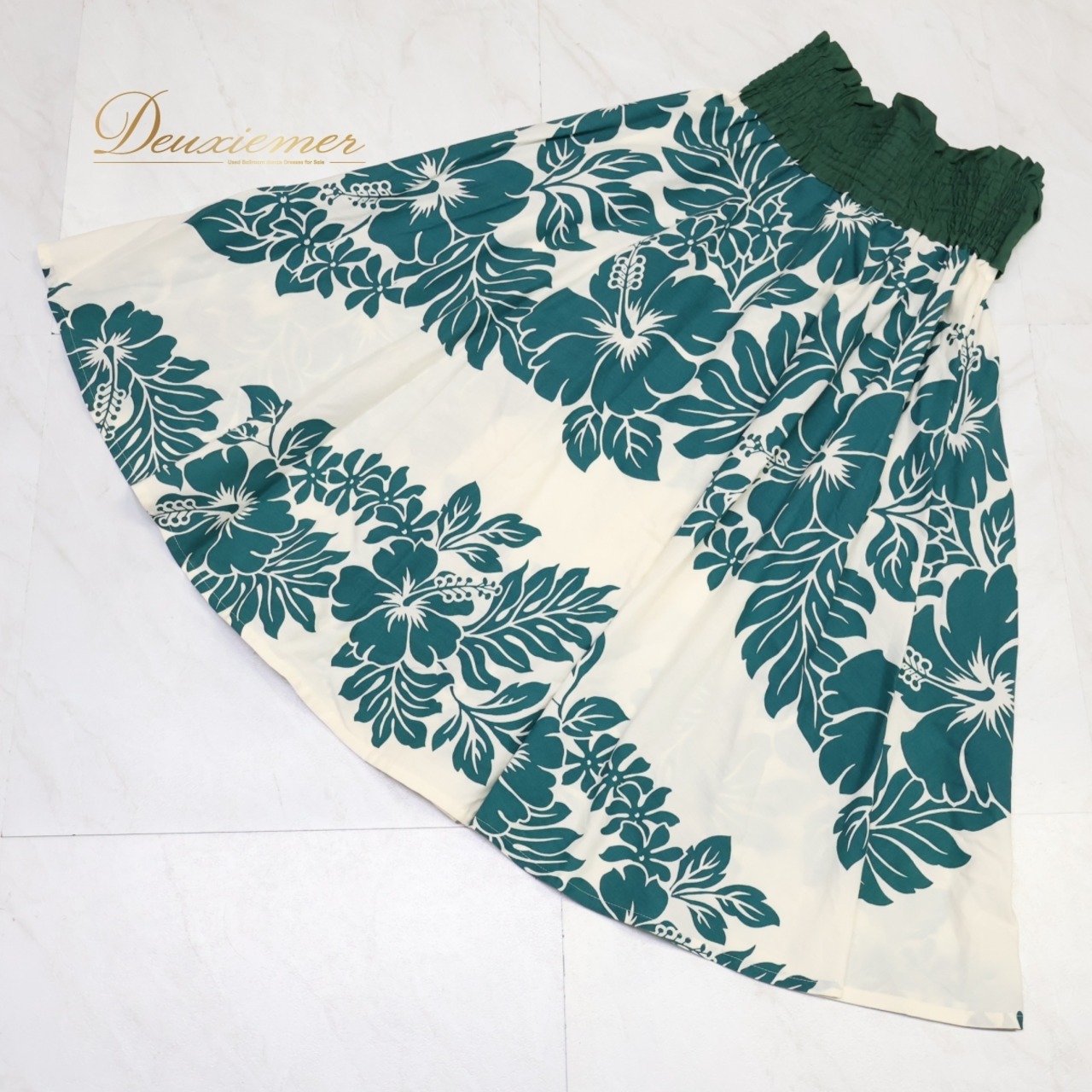 #フラダンス #フラスカート #MermaidLine #MMJ #マーメイドライン #ホワイトスカート #グリーンコーデ #ハイビスカス柄 #花柄スカート #リボンデザイン #爽やかカラー #かわいい衣装 #南国ファッション #アロハスタイル #ステージ映え #夏スタイル #ダンス衣装 #ダンスコスチューム #ステージ衣装 #古着 #中古 #ENUTSU