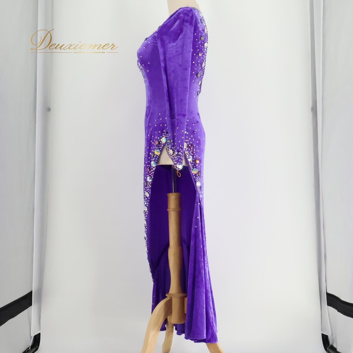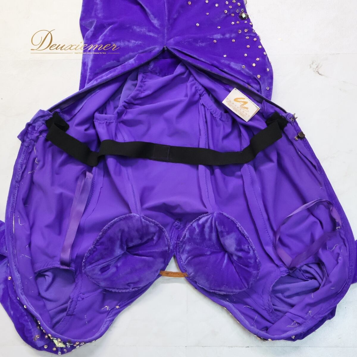 【イングランド製 社交ダンス衣装】パープル chrisanne クリスアン ラテン ドレス ワンピース 紫 ベロア 高級感 上品 デモ ラテンドレス エレガント 舞台衣装 オシャレ おしゃれ 丈違い