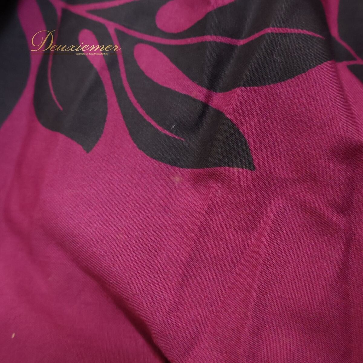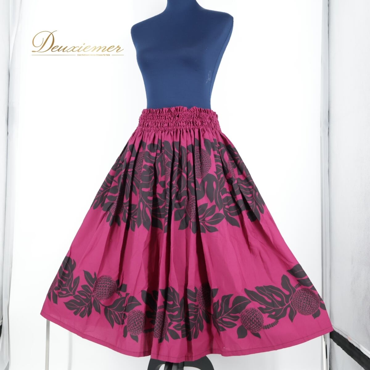 #フラダンス #パウスカート #ワインレッド #赤紫コーデ #ブラックアクセント #パンの木柄 #ハワイアンプリント #落ち着いた色合い #ふんわりスカート #かわいい衣装 #南国スタイル #アロハファッション #ステージ映え #大人かわいい #ナチュラルコーデ #ダンス衣装 #ダンスコスチューム #ステージ衣装 #古着 #中古 #ENUTSU