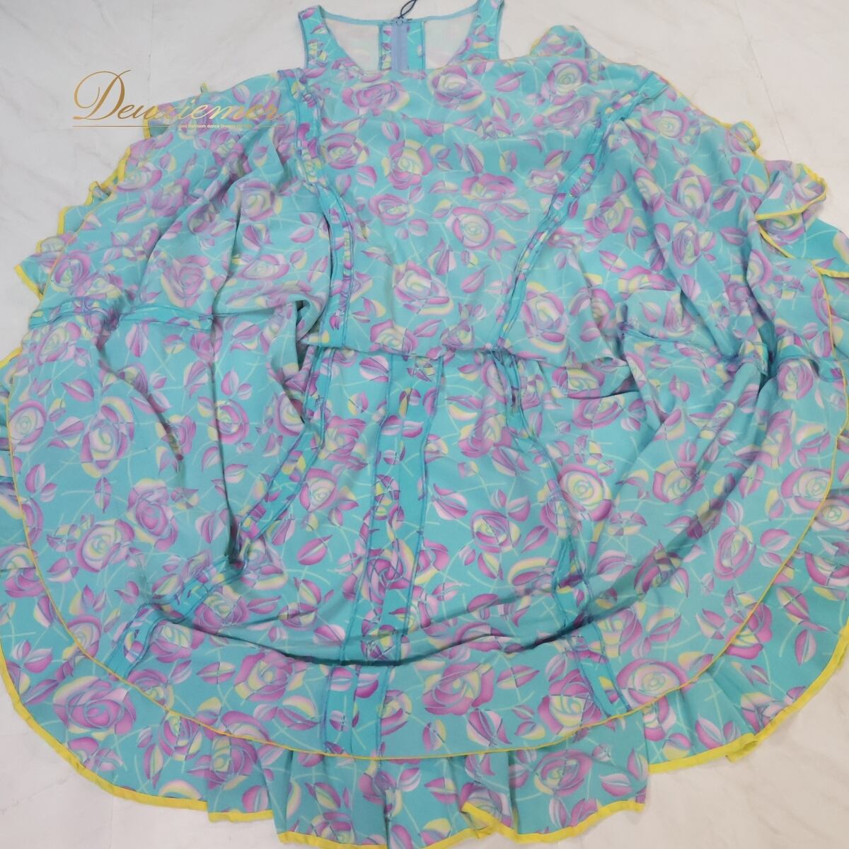 #フラメンコ #フラメンコ衣装 #ワンピースドレス #エルモサイベリア #HERMOSAIBERIA #水色ドレス #黄色ドレス #爽やかコーデ #明るい衣装 #舞台衣装 #ステージドレス #発表会衣装 #情熱的 #スペインスタイル #ラテンダンス #華やかスタイル #ダンス衣装 #ダンスコスチューム #ステージ衣装 #古着 #中古 #ENUTSU