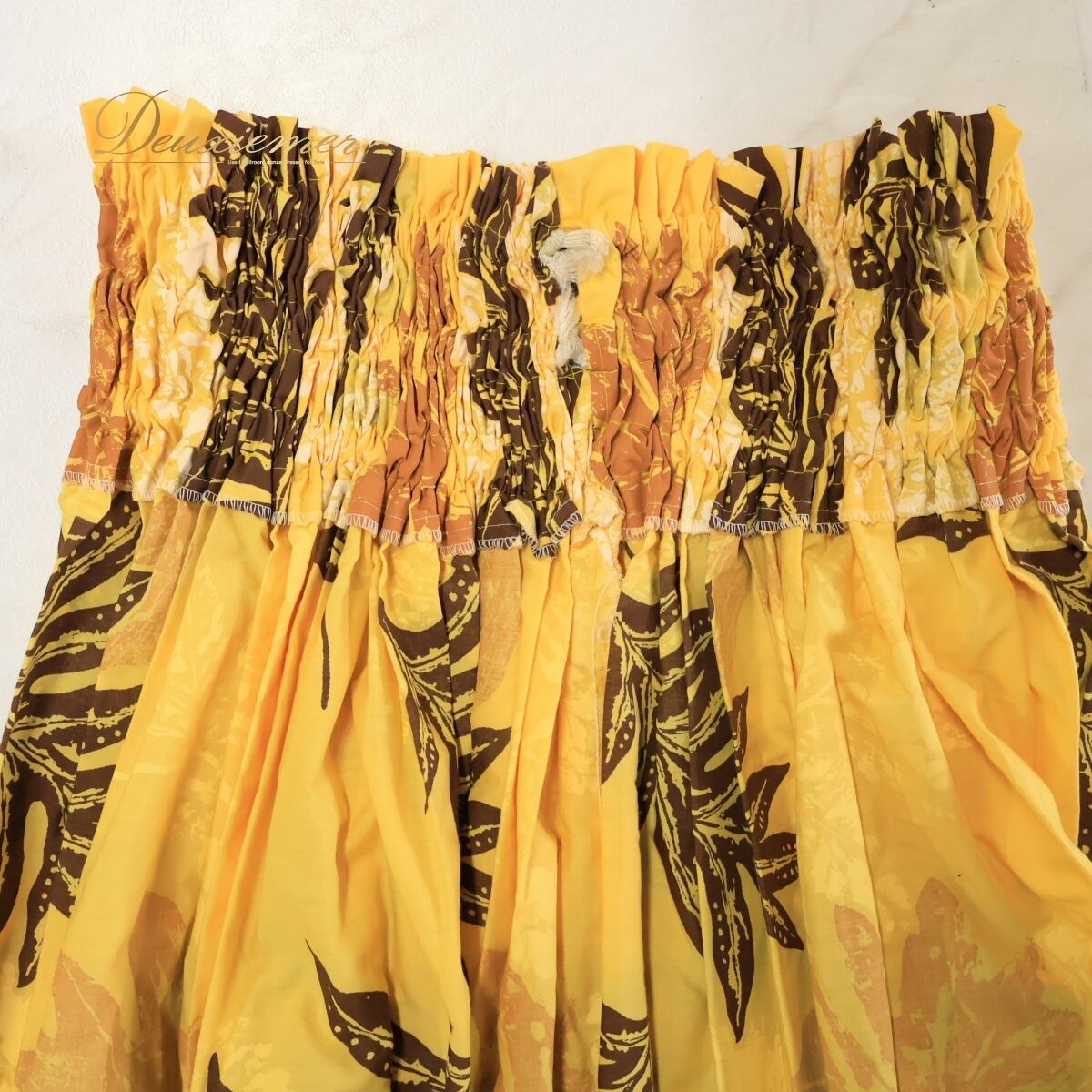#フラダンス #パウスカート #イエローコーデ #ブラウンアクセント #ホワイトスカート #葉っぱ柄 #ハワイアンプリント #アロハファッション #明るい色合い #かわいいスカート #ふんわりシルエット #南国スタイル #リゾートコーデ #夏ファッション #ナチュラルかわいい #ステージ映え #ダンス衣装 #ダンスコスチューム #ステージ衣装 #古着 #中古 #ENUTSU