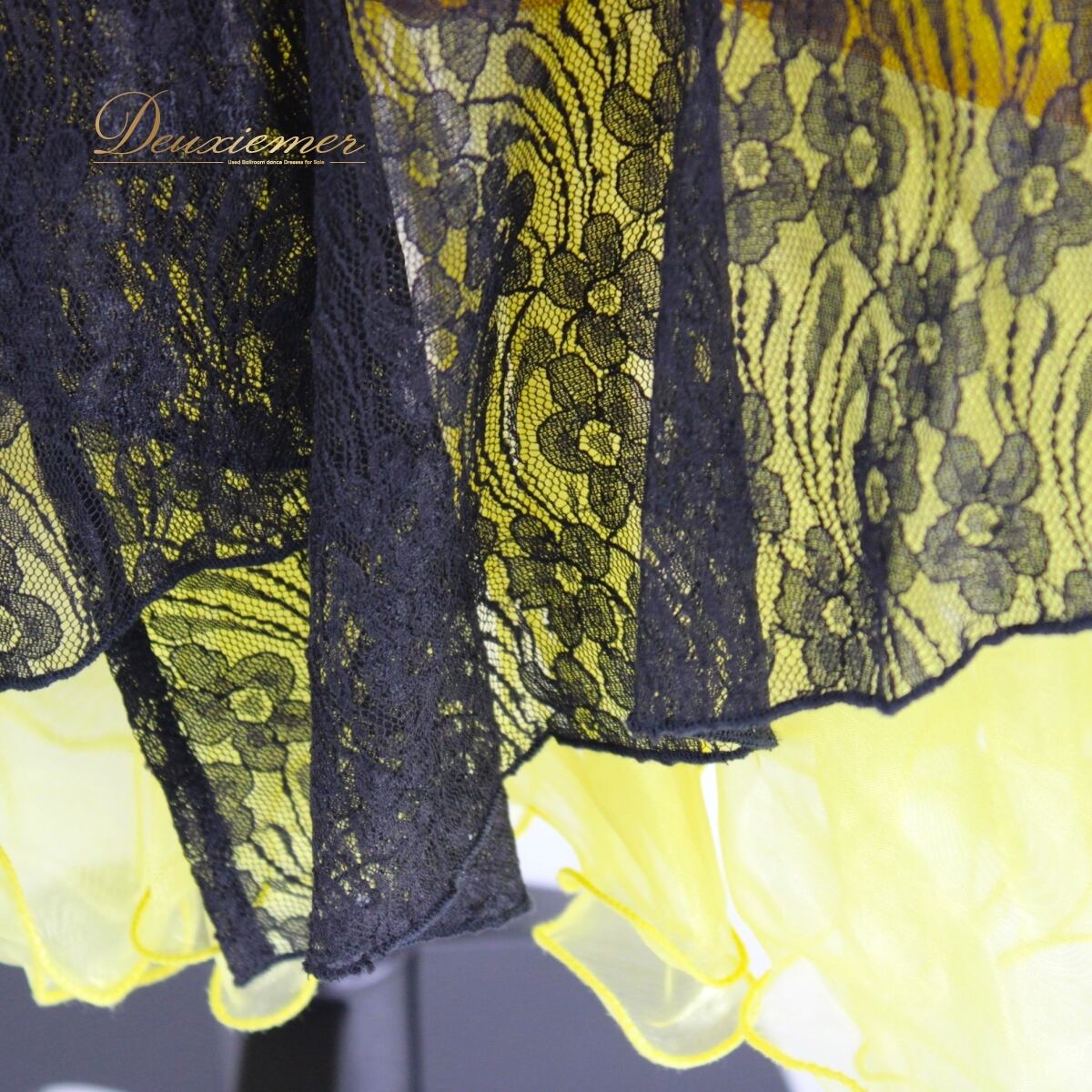 #社交ダンス衣装 #ダンススカート #STEPHOUSE #花柄レース #ブラックイエロー #二重スカート #華やかデザイン #フレアスカート #ダンスファッション #レッスンウェア #ステージスカート #大人スタイル #エレガントコーデ #フリルスカート #ダンスウェア #ダンス衣装 #ダンスコスチューム #ステージ衣装 #古着 #中古 #ENUTSU