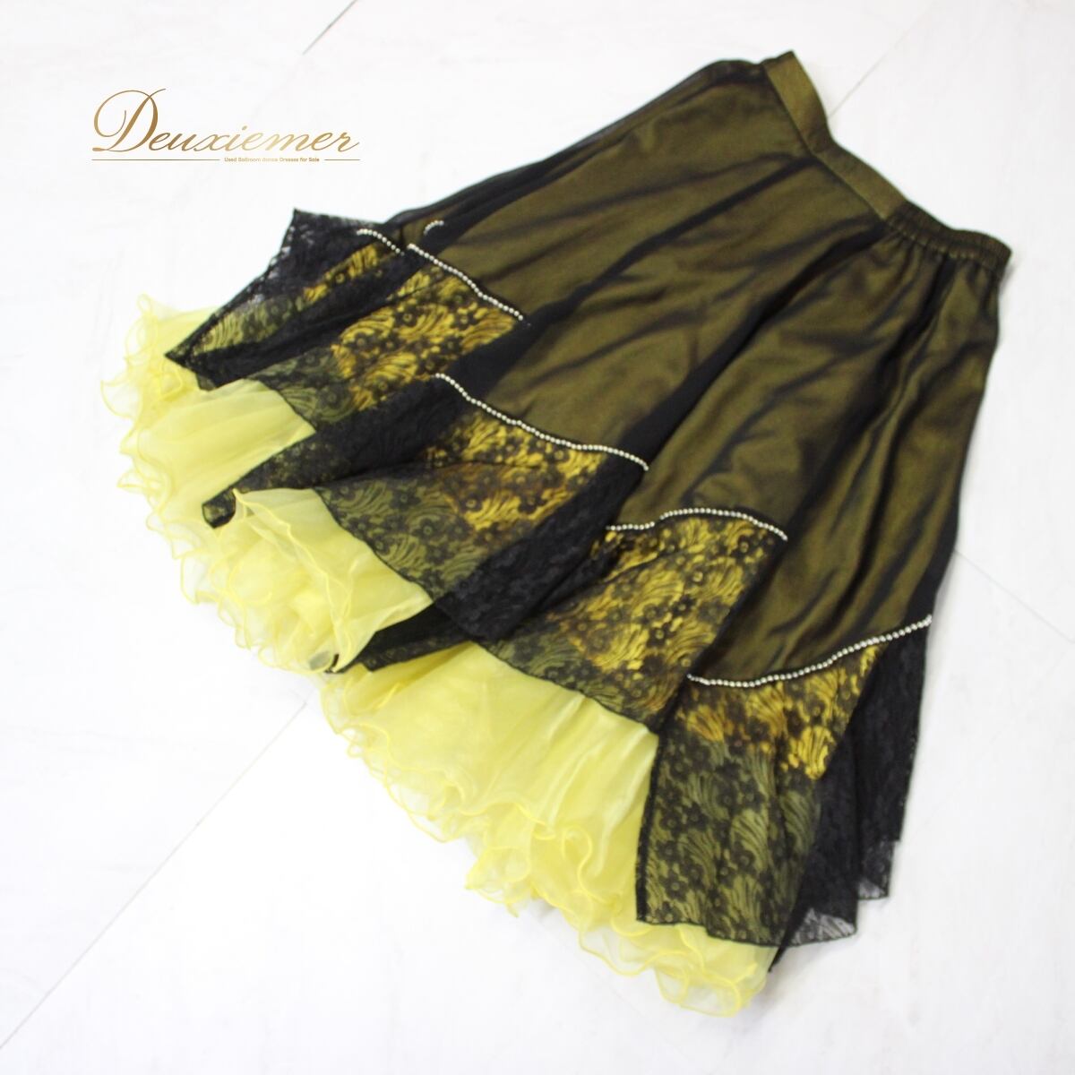 【美品 社交ダンス衣装】スカート レッスンウェア パーティー 11号 STEP HOUSE ブラック イエロー 黒 黄色 レース 派手