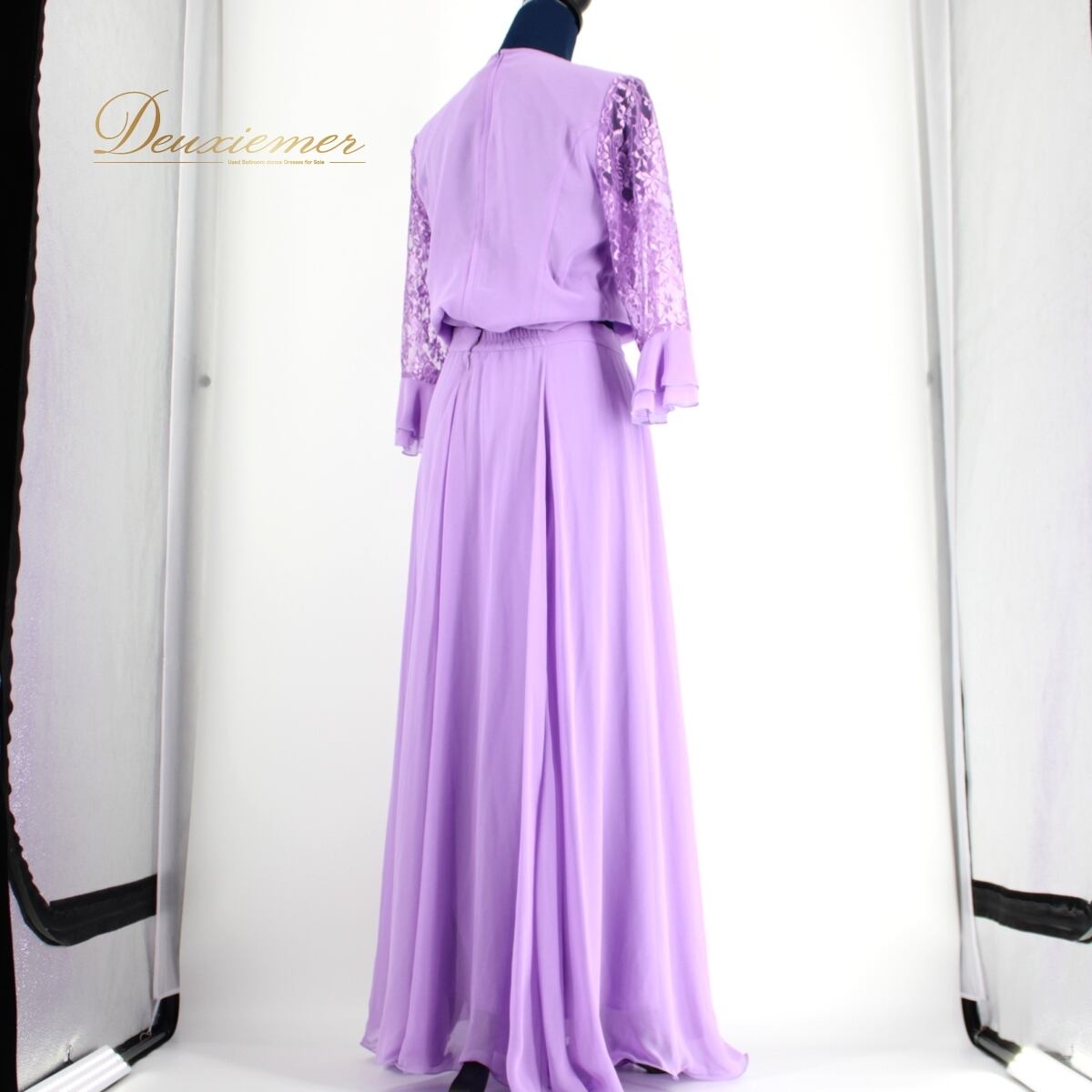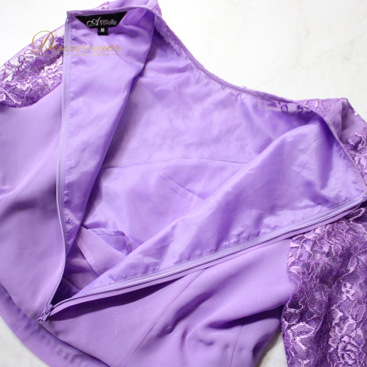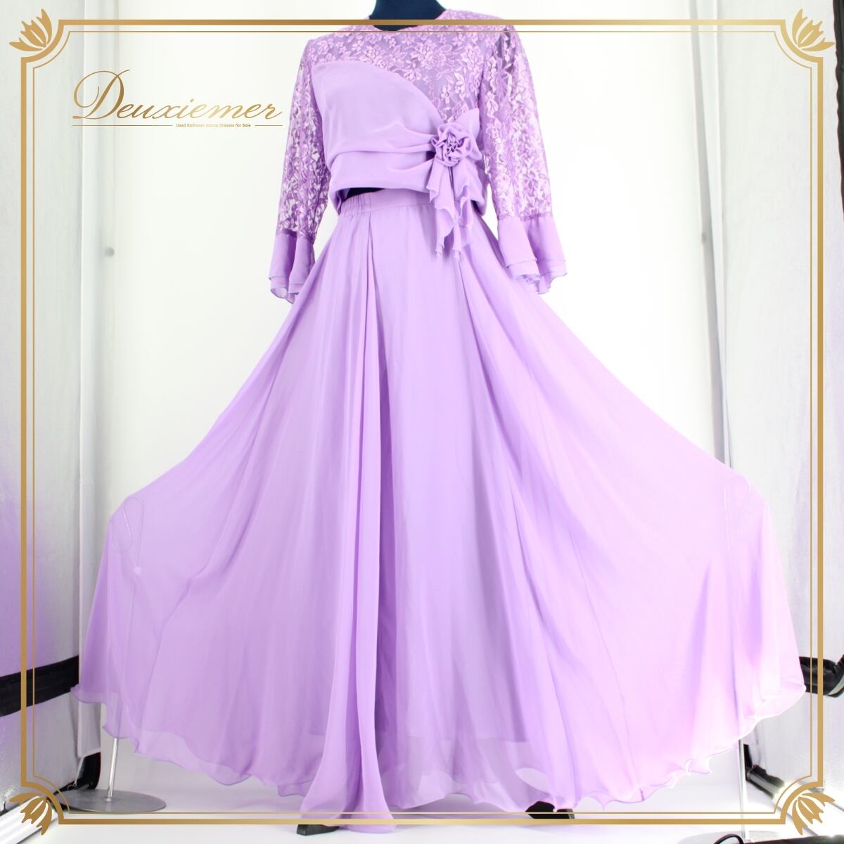 【美品 社交ダンス衣装】上下セット レッスンウェア パーティー A vivare Mサイズ 紫 パープル 花柄 レース フェミニン 派手