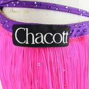 【日本製 社交ダンス衣装】ピンク Chacott チャコット ラテン ドレス ワンピース フリンジ 蛍光 紫 デモ 競技用 ダンス 小物 伸縮性